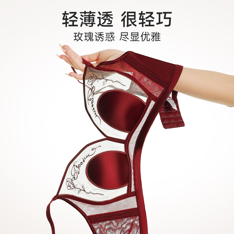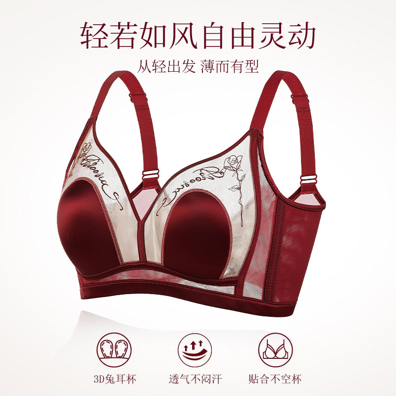 古今性感镂空文胸女玫瑰诱惑超薄兔耳杯收副乳提托防下垂聚拢内衣
