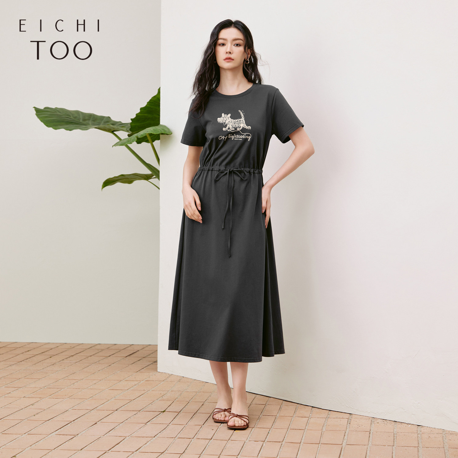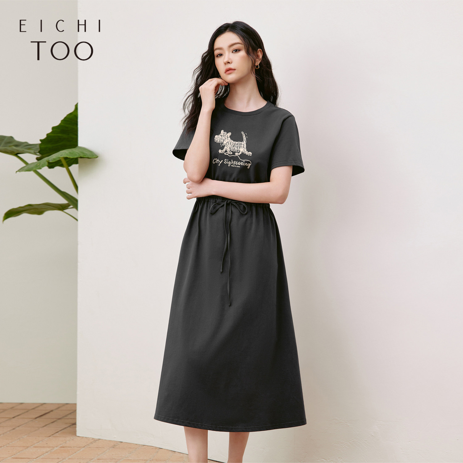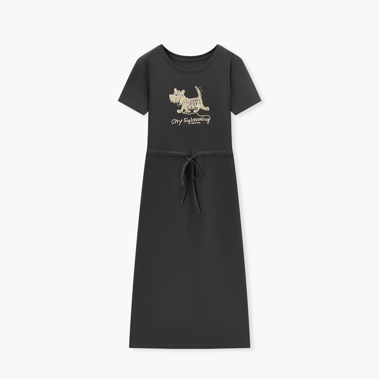 爱居兔全棉休闲连衣裙女夏季新款可调节收腰可爱印花T恤裙