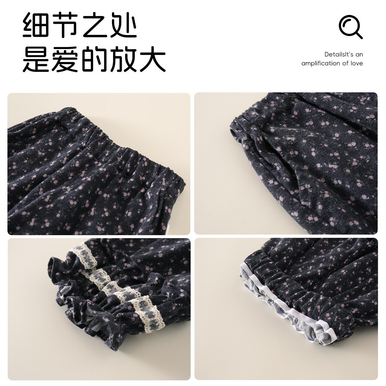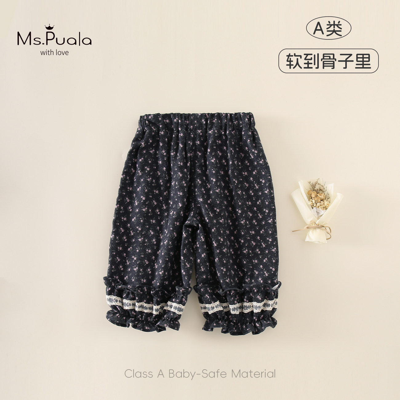 Ms.Puala女童宝宝休闲裤春秋韩系婴幼儿碎花宽松花边束脚裤长裤