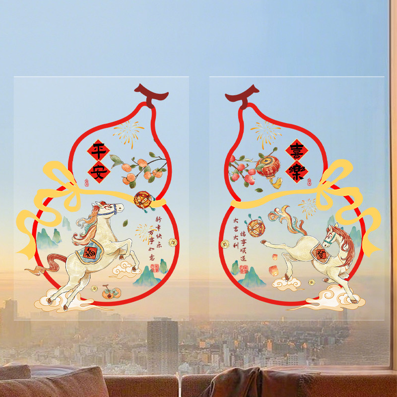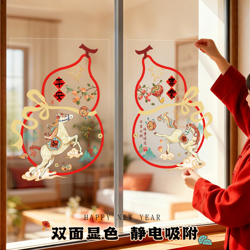 新年窗花静电贴马年2026新款福字贴过年春节装饰玻璃门贴年画窗贴