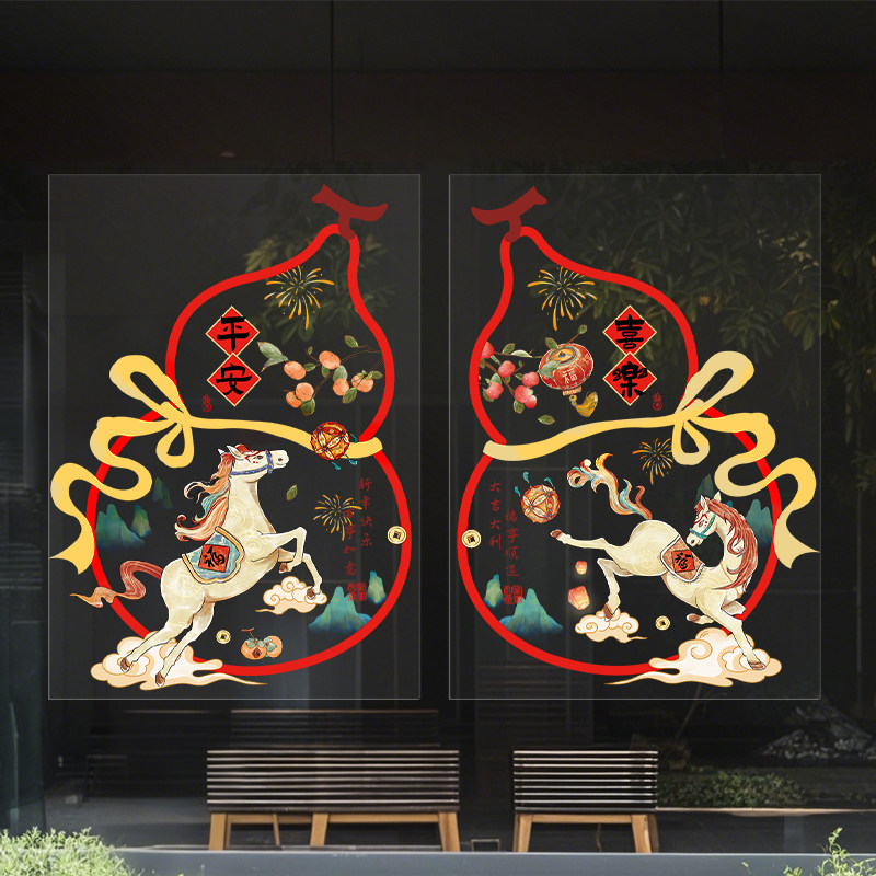 窗花2026新款马年春节装饰福字门贴新年静电贴发财树窗户玻璃贴纸
