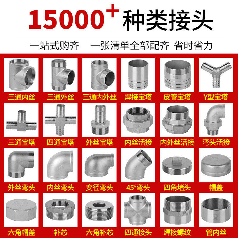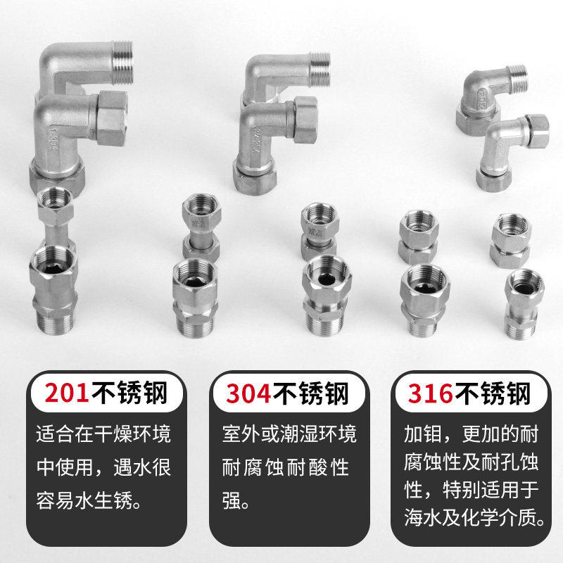 304不锈钢活接三通分水器带活接头内外丝弯头水管配件4/6分1寸