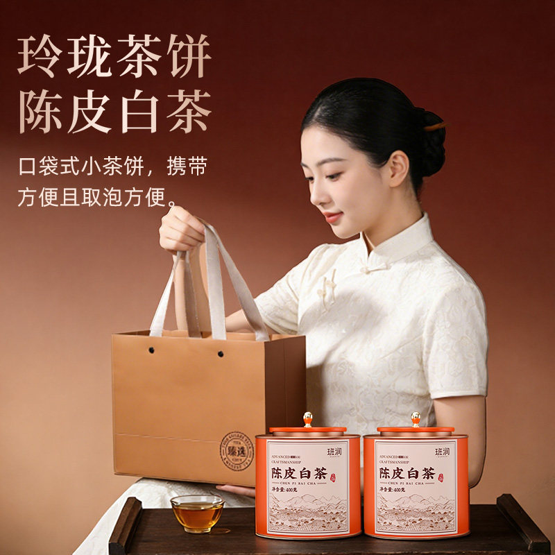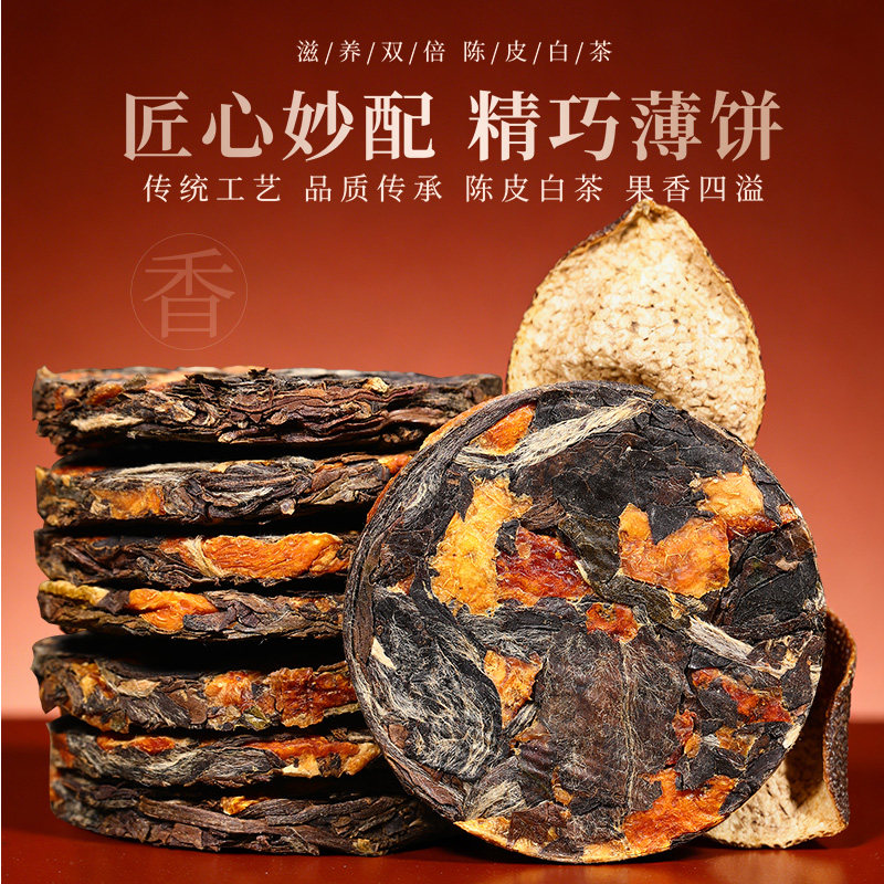 十年陈新会老陈皮白茶福建寿眉贡眉福鼎白茶小茶饼茶叶礼盒装送礼