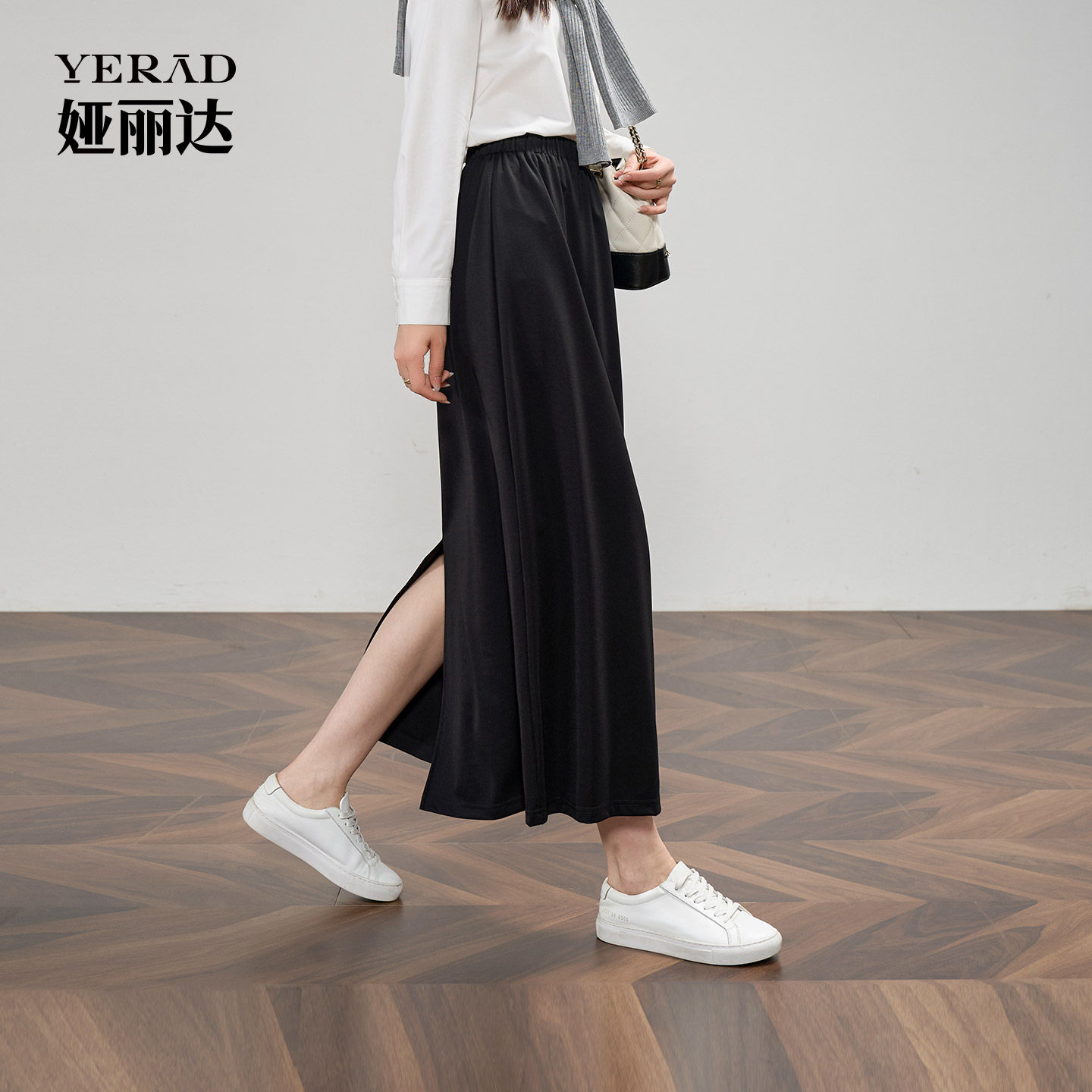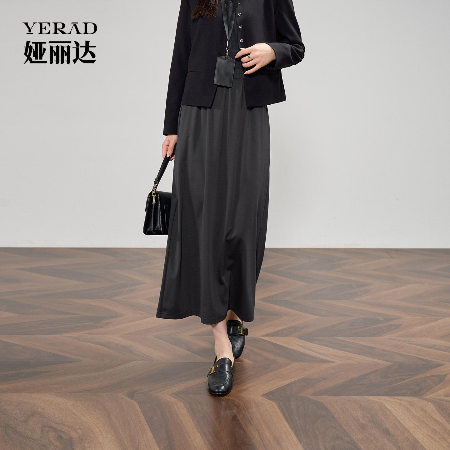 【垂顺桑蚕丝】娅丽达休闲裙子黑色半身裙女新款直筒裙秋季长裙