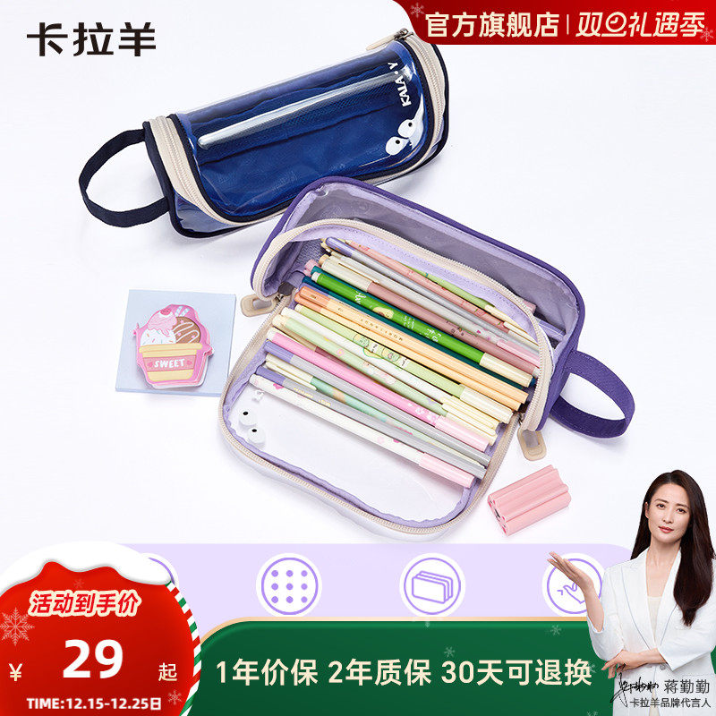 卡拉羊考试专用大容量透明笔袋糖果色铅笔盒新款A标面料安全无毒抑菌耐磨初中生女小学生男考研文具盒防水