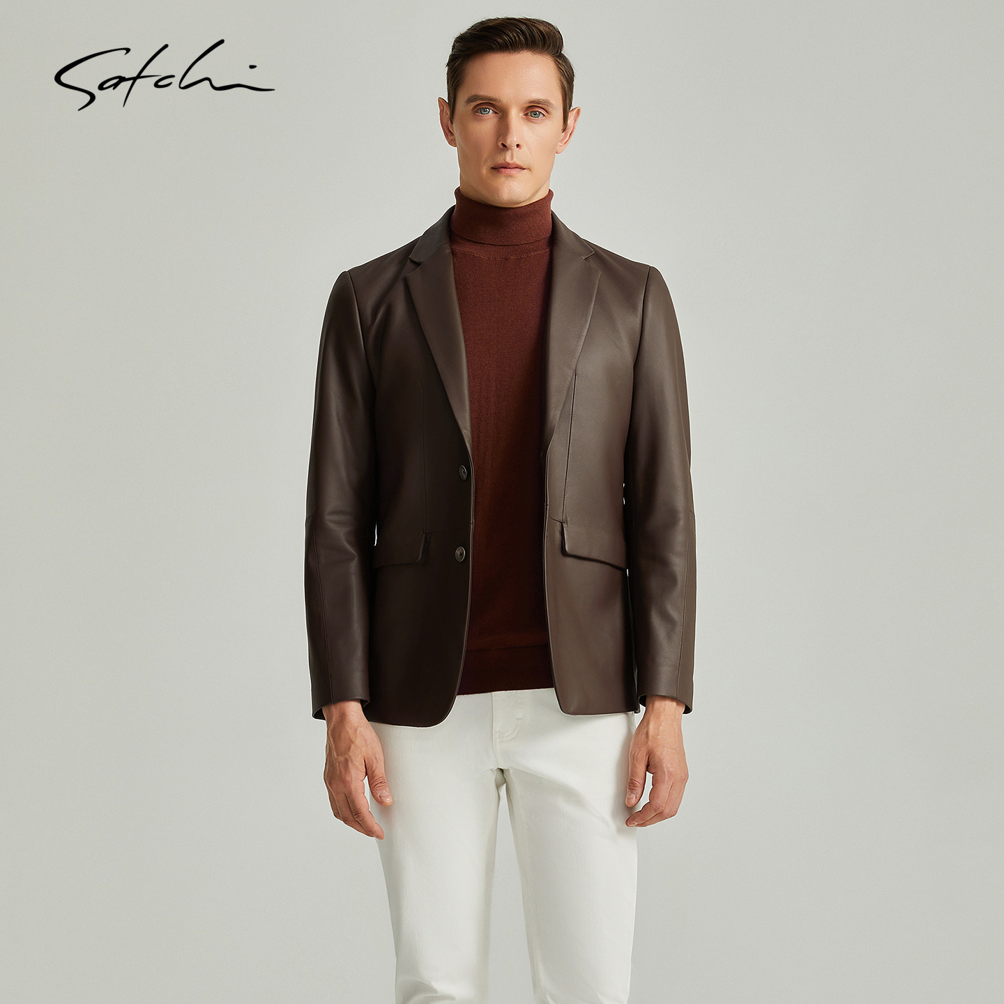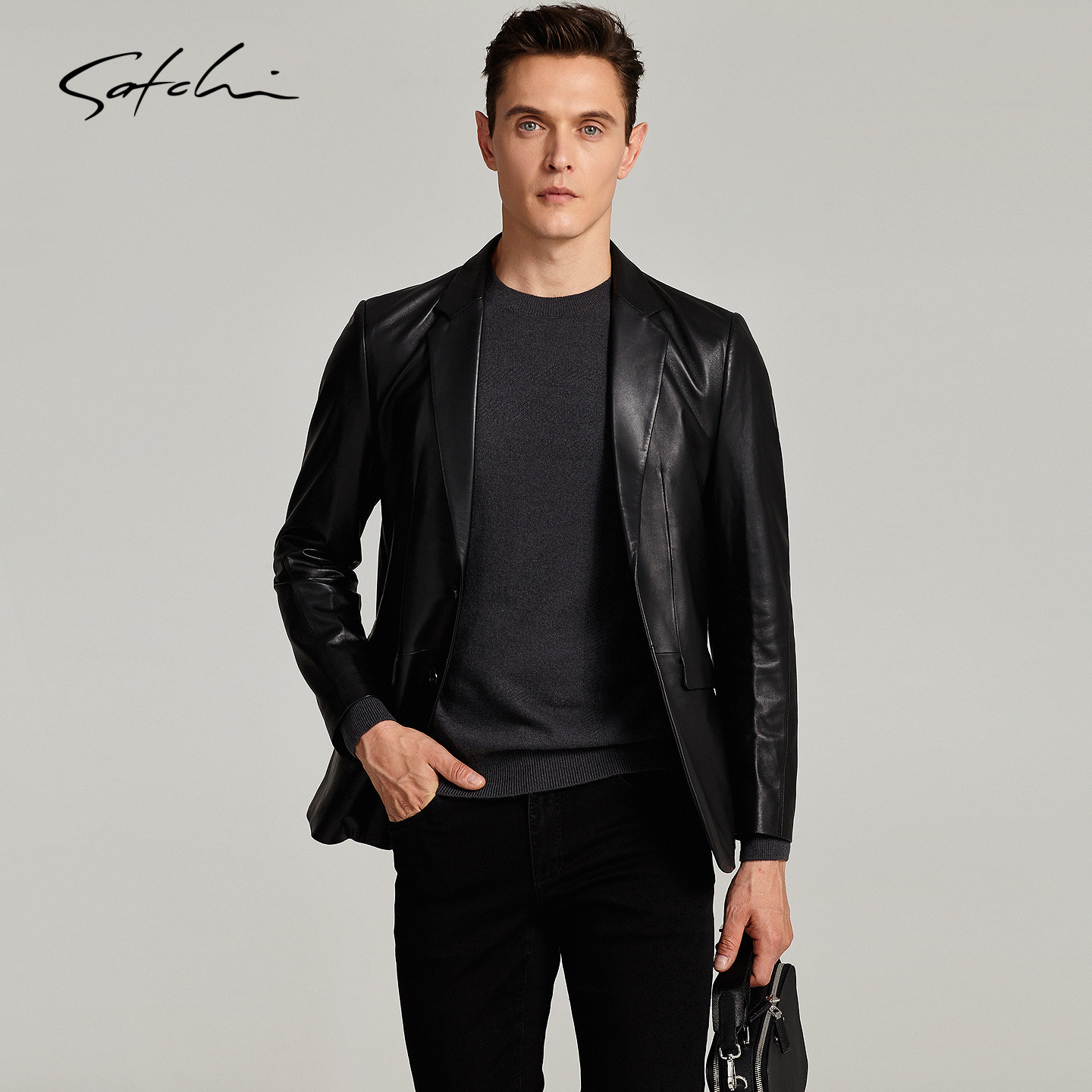 SATCHI沙驰男装男士真皮皮衣冬季新款羊皮西装领高端商务西服外套