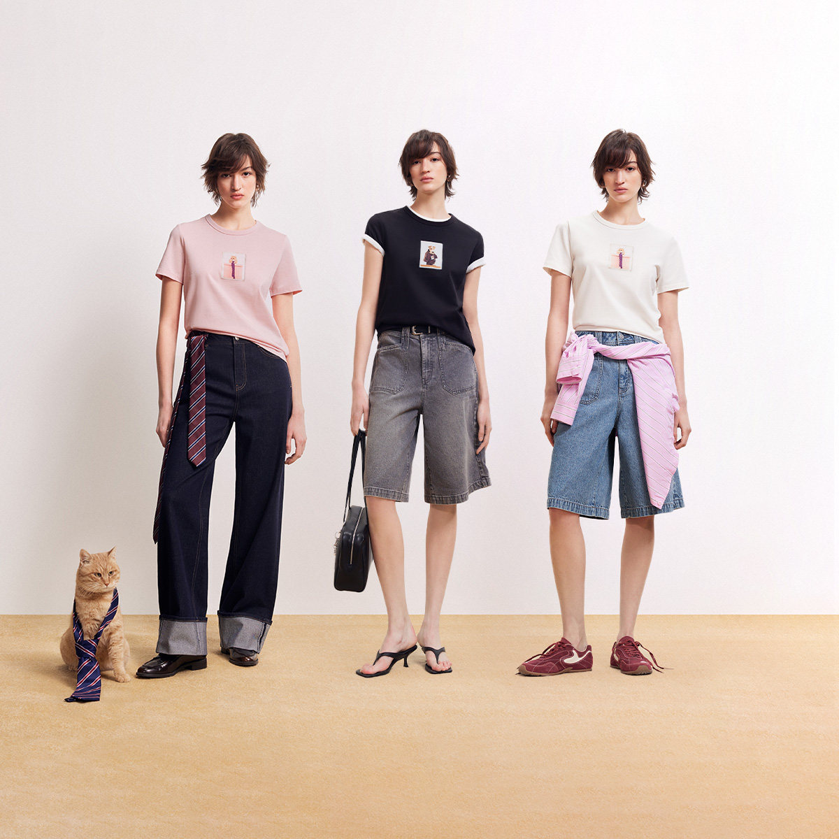 蒲熠星同款LOGICAT 猫咪皮标印花T恤春夏男女同款情侣短袖