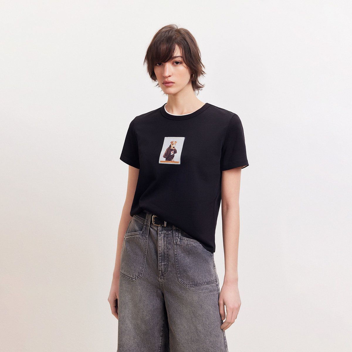 【宠物派对】ONLY2026春季新款纯棉上衣印花圆领正肩短袖T恤女