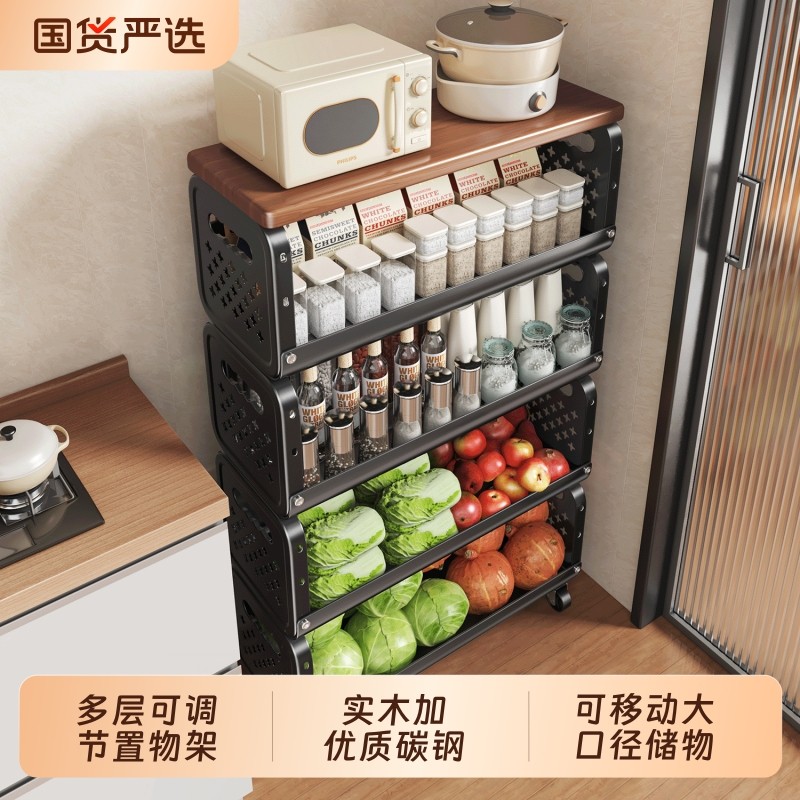 厨房置物架家用落地多层蔬果收纳架多功能电饭煲烤箱可移动小推车