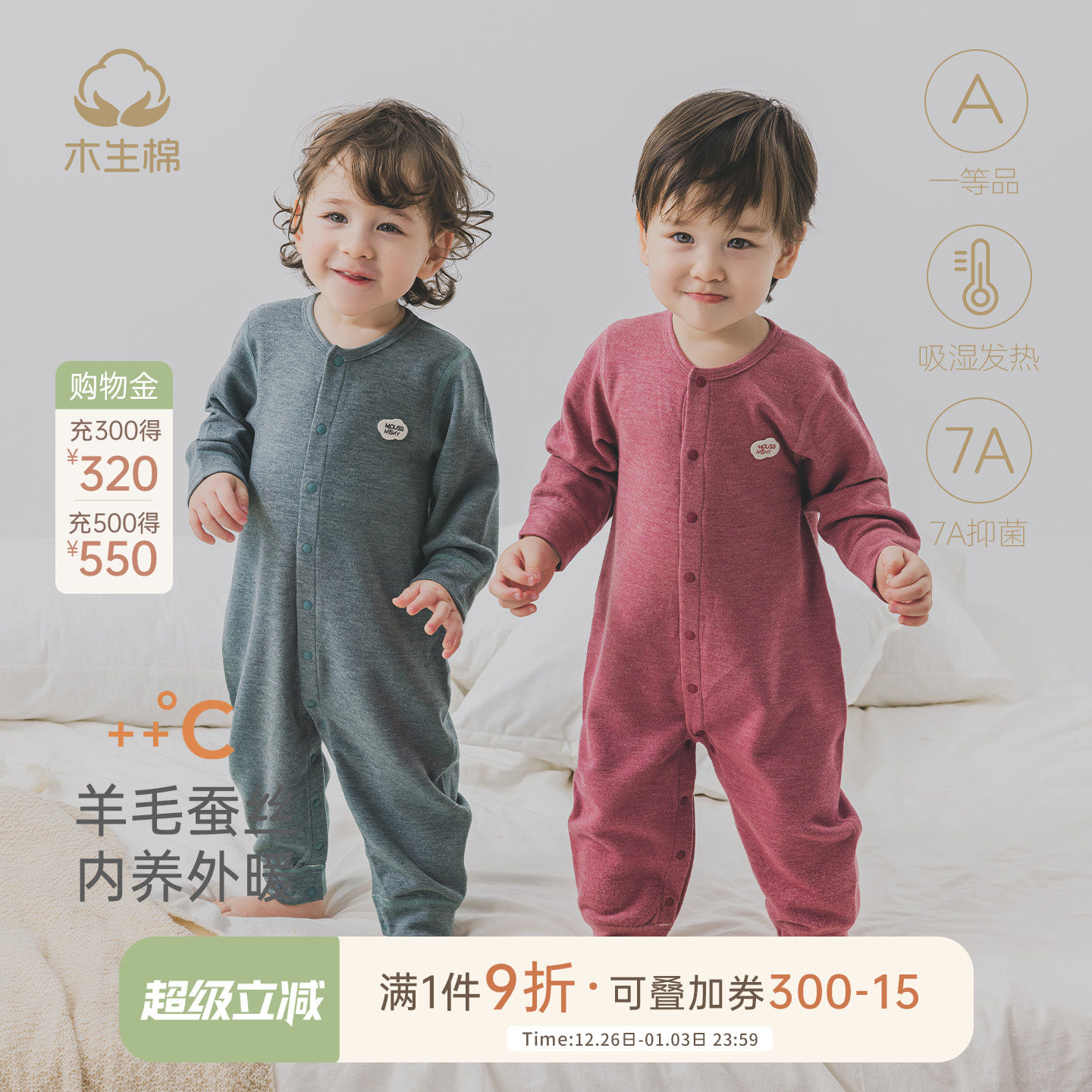 【双面绒】男女宝宝桑蚕丝羊毛连体衣服秋冬婴儿长袖保暖哈衣爬服