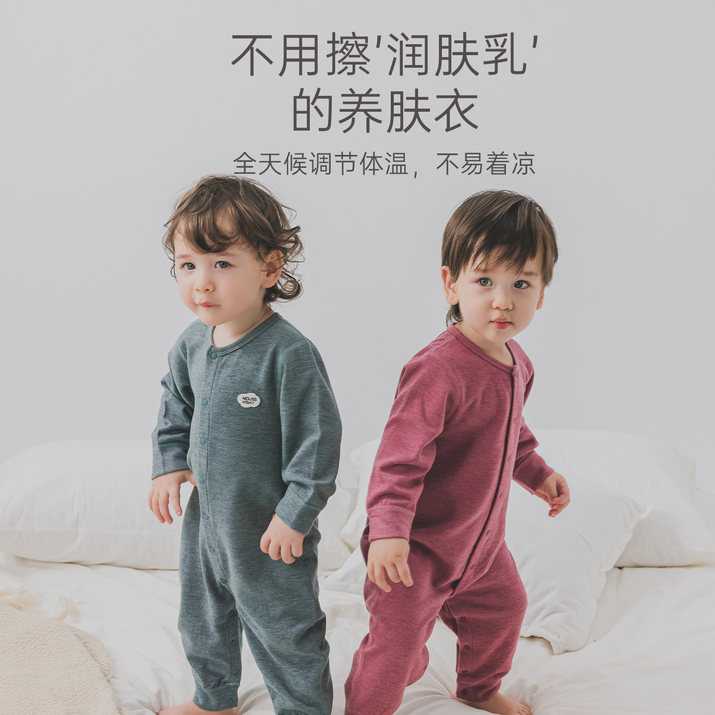 英氏婴儿连体衣秋冬新款保暖新生儿衣服内搭可外穿宝宝哈衣爬服