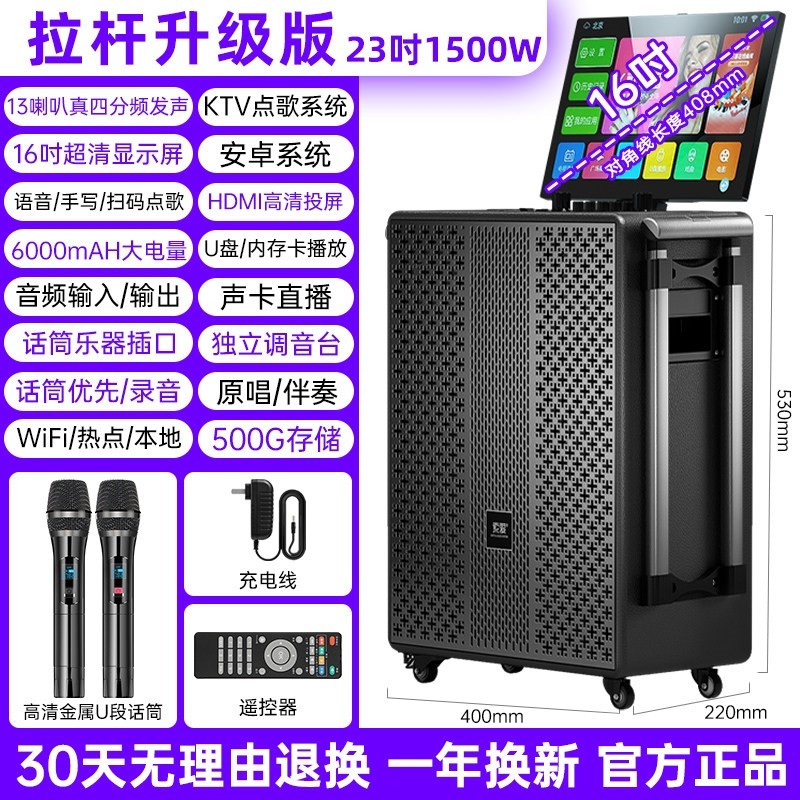 索爱音响户外音箱k歌广场舞带显KTV点歌一体机麦克风套装示屏家用