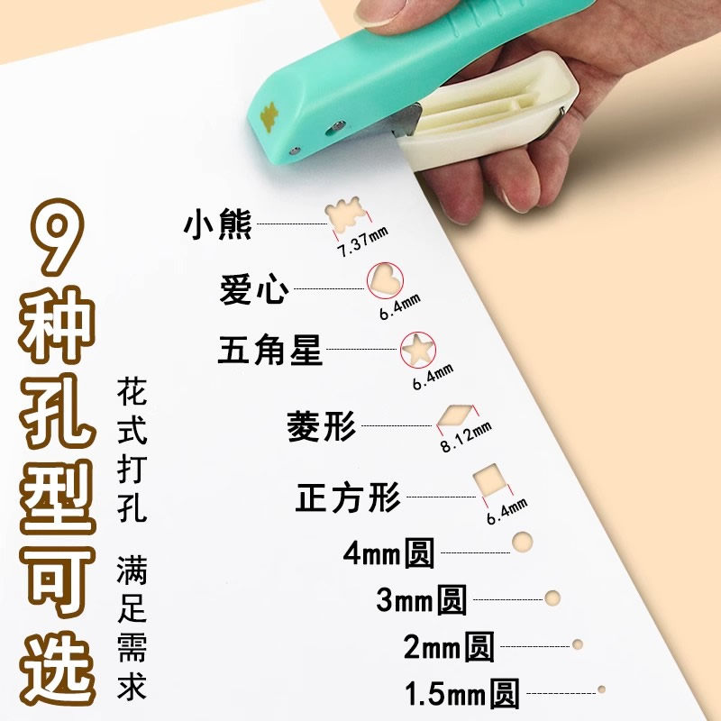 可得优打孔机小孔4MM单孔压花机幼儿园图案打孔机手账打洞器压图器打花手工diy星星3MM打孔DHQ手账打洞机迷你