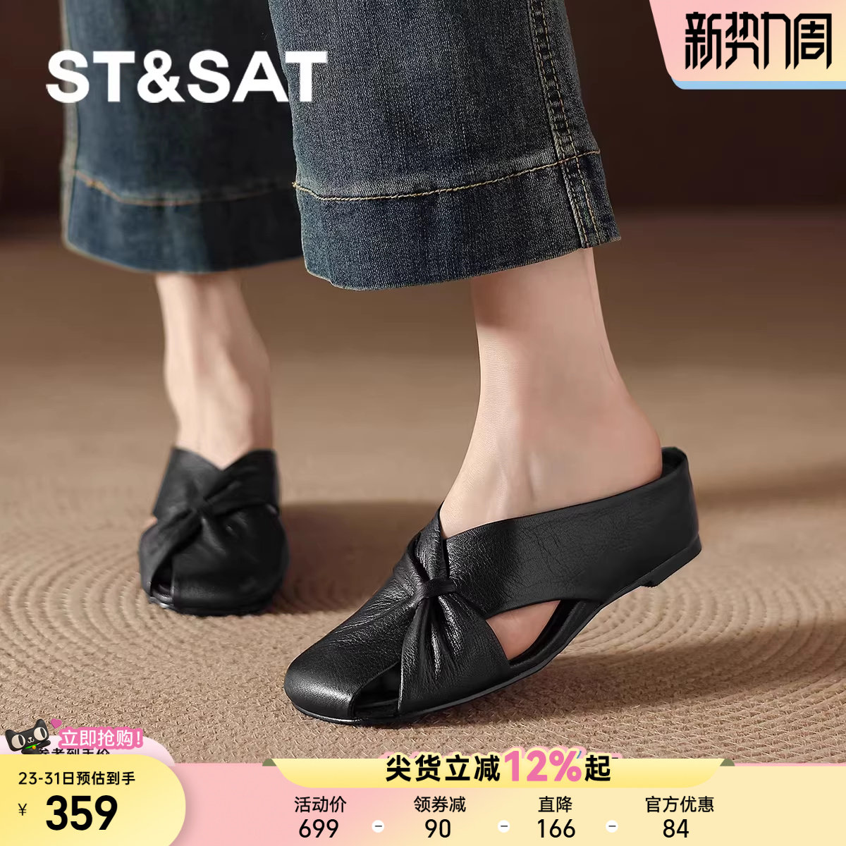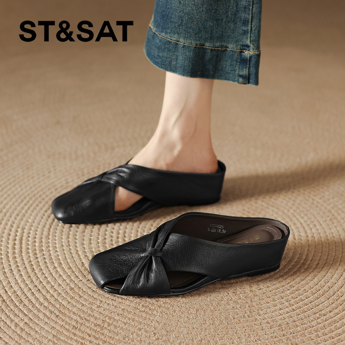 星期六羊皮真皮包头拖鞋2026新款夏季外穿半拖女款女鞋子穆勒凉鞋