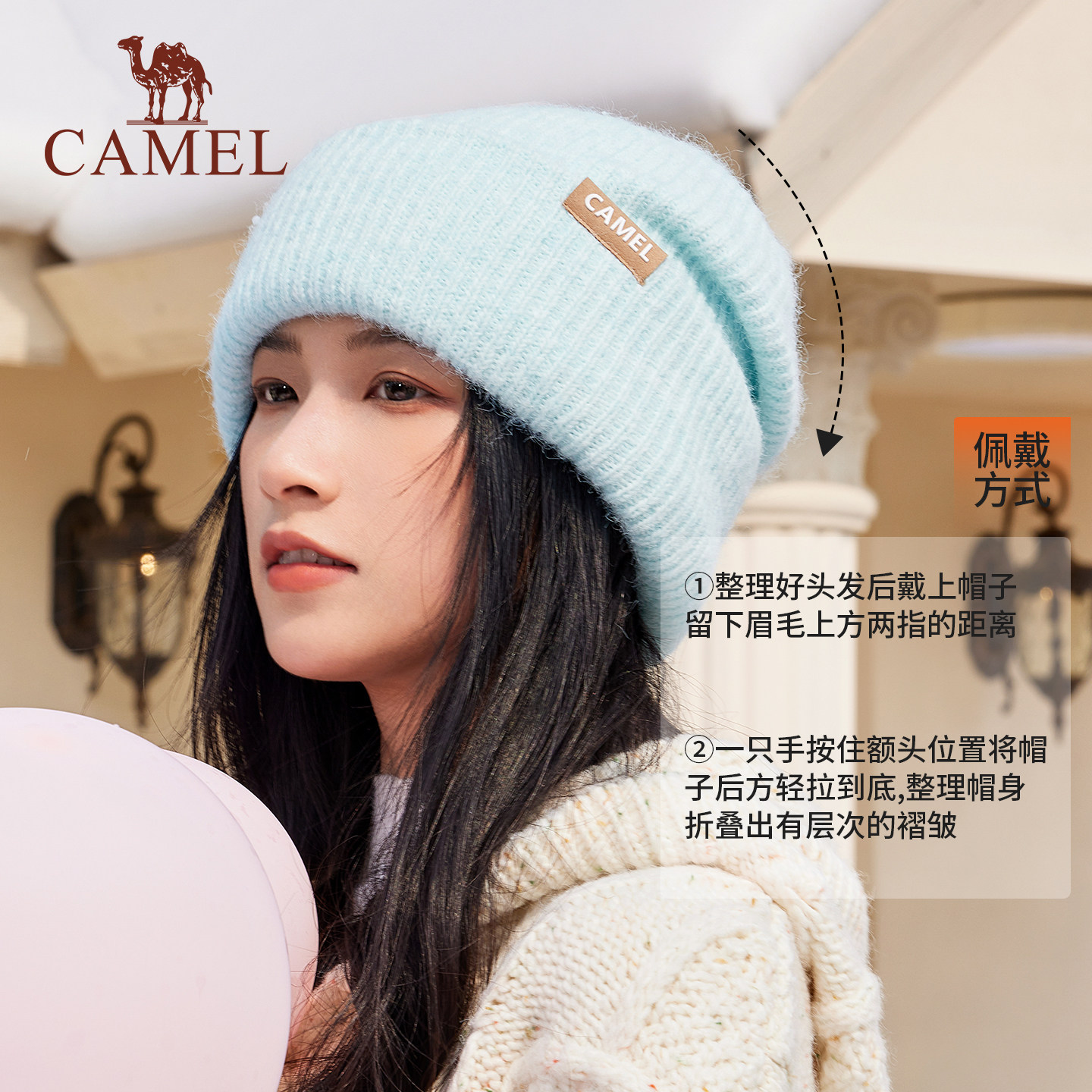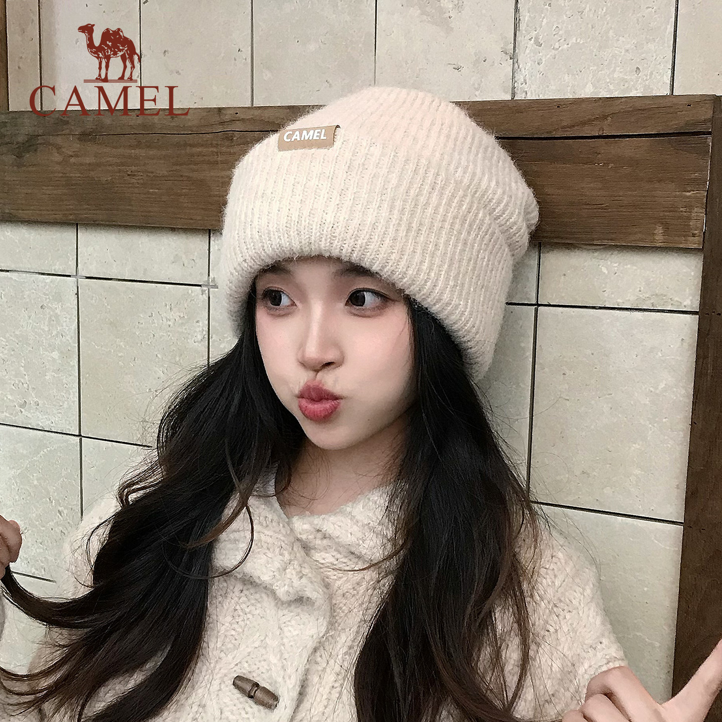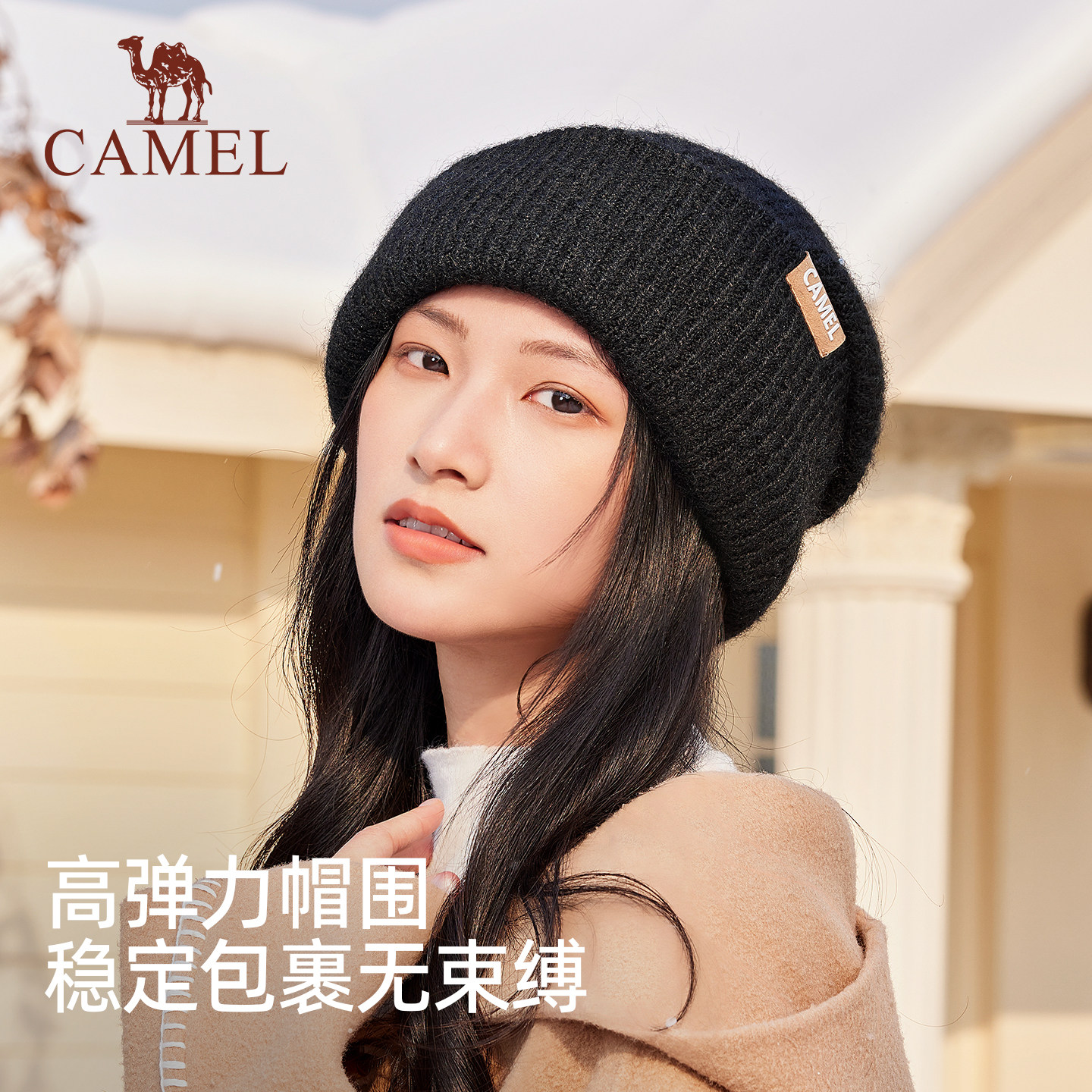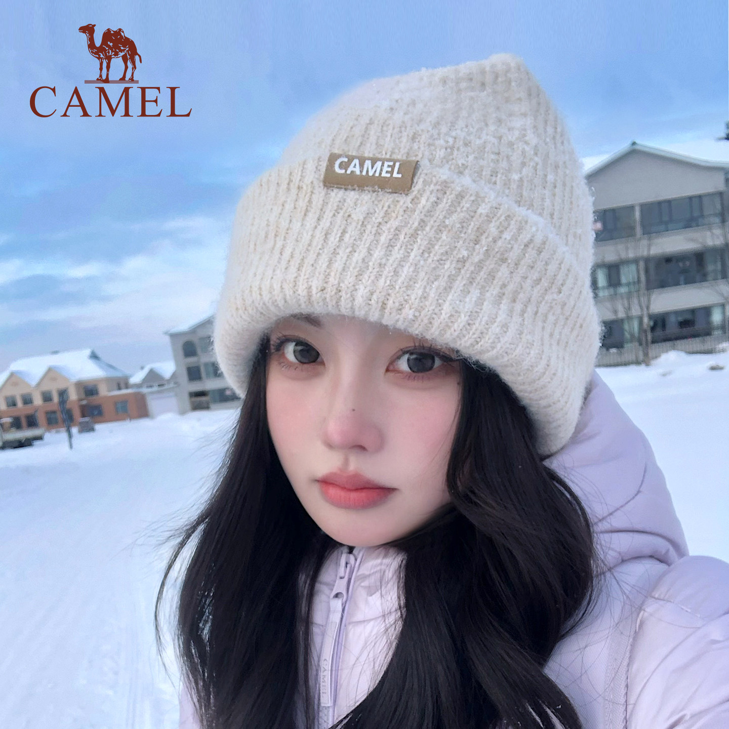 骆驼麻薯帽针织帽2025新款秋冬双层加厚保暖毛线帽女冷帽堆堆帽子