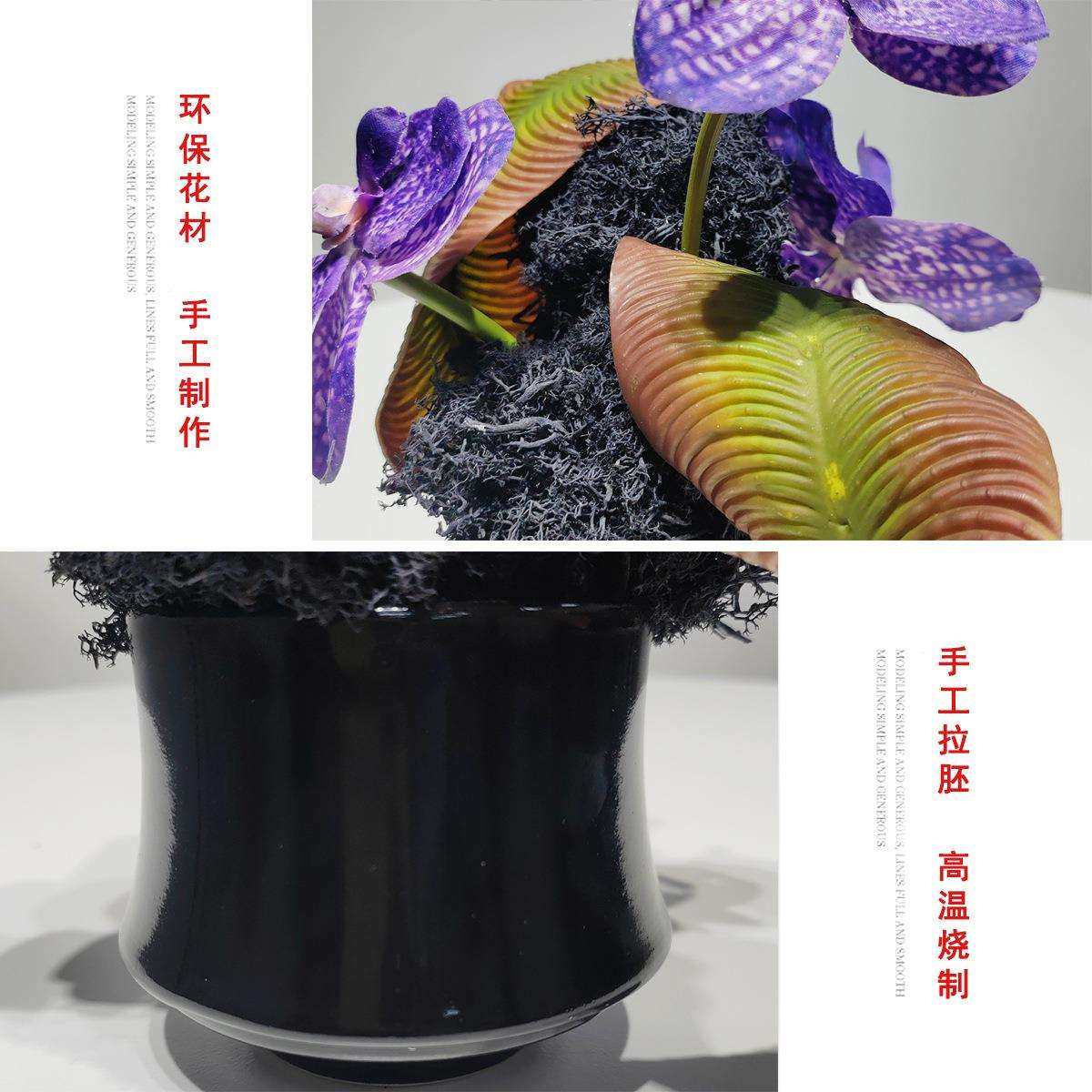 新中式轻奢仿真花艺办公室客厅餐桌茶几桌售楼部洽谈桌装饰品摆件