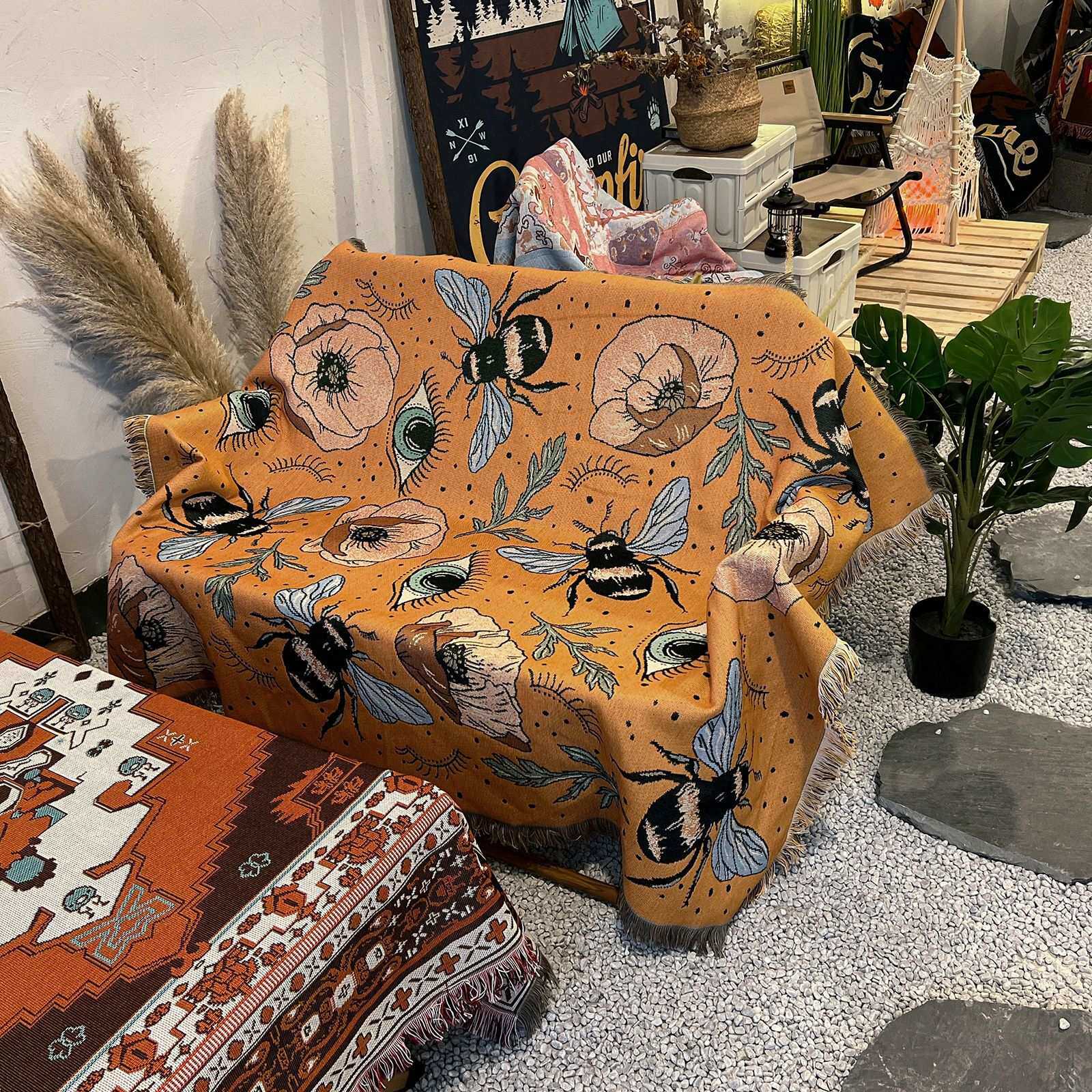 户外野餐毯露营毯子沙发毯盖毯ins风多功能线毯波西米亚毯线毯