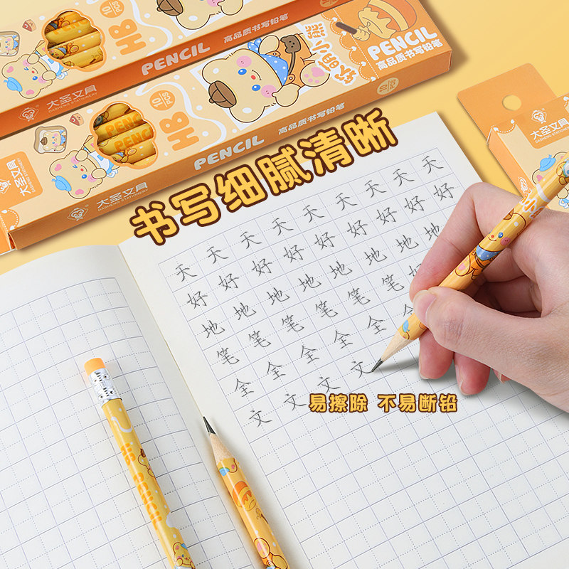 卡皮巴拉铅笔小学生专用幼儿园初学者写字笔儿童安全hb圆杆铅笔一二年级练字学习文具素描笔原木绘画笔