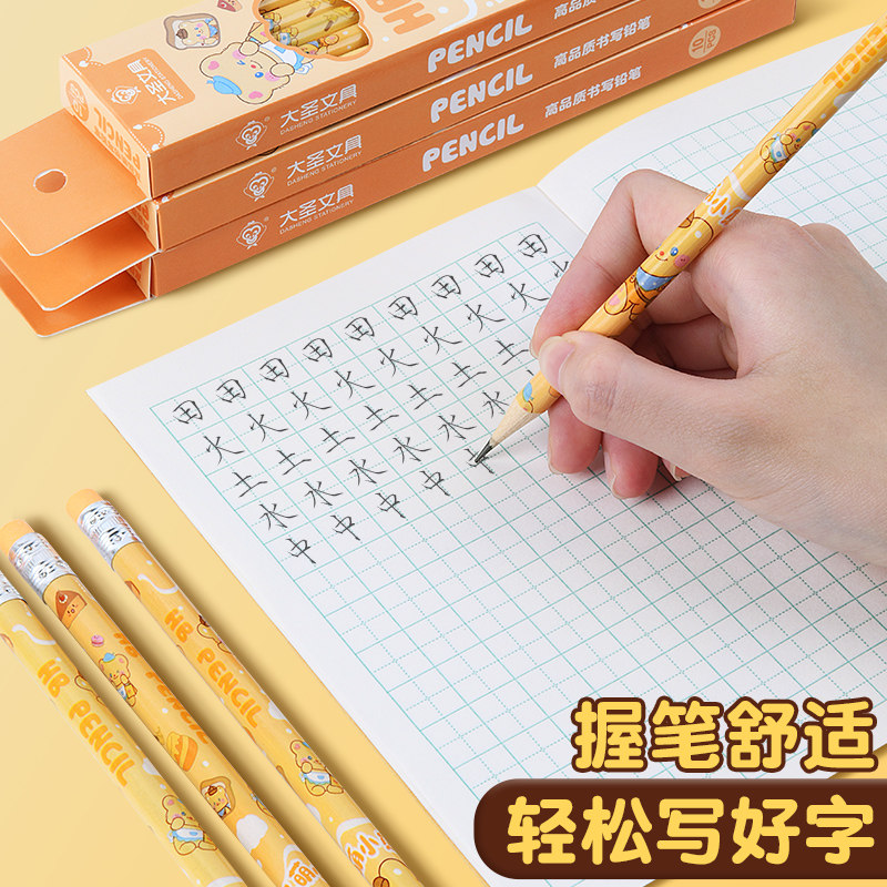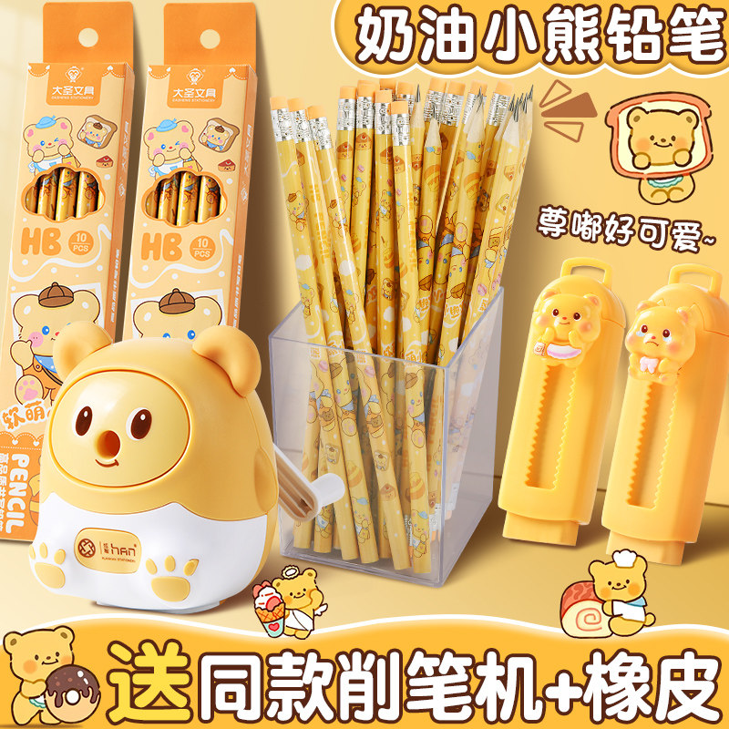 黄油小熊铅笔小学生专用女生可爱卡通考试日常练字写字HB铅笔文具学习用品安全易书写细腻清晰易擦除不易断铅