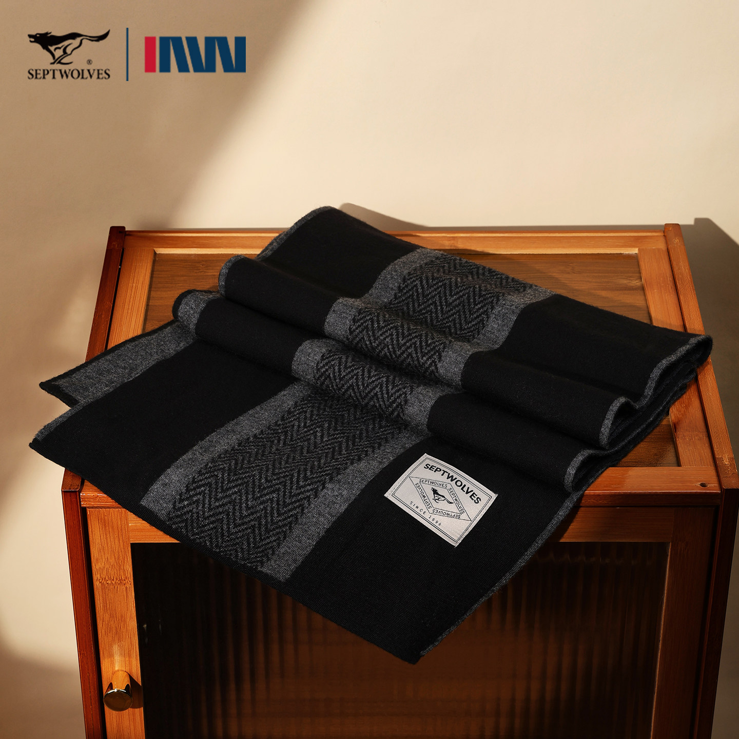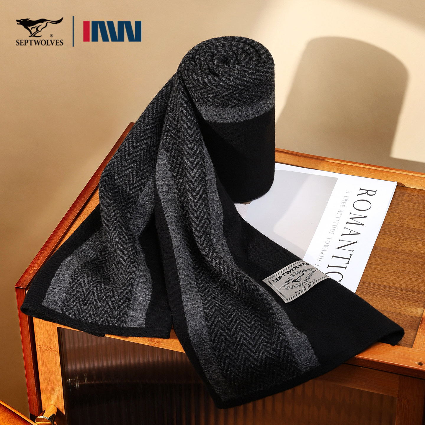 七匹狼100%羊毛男士围巾高档礼盒送老公男友生日礼物加厚保暖围脖