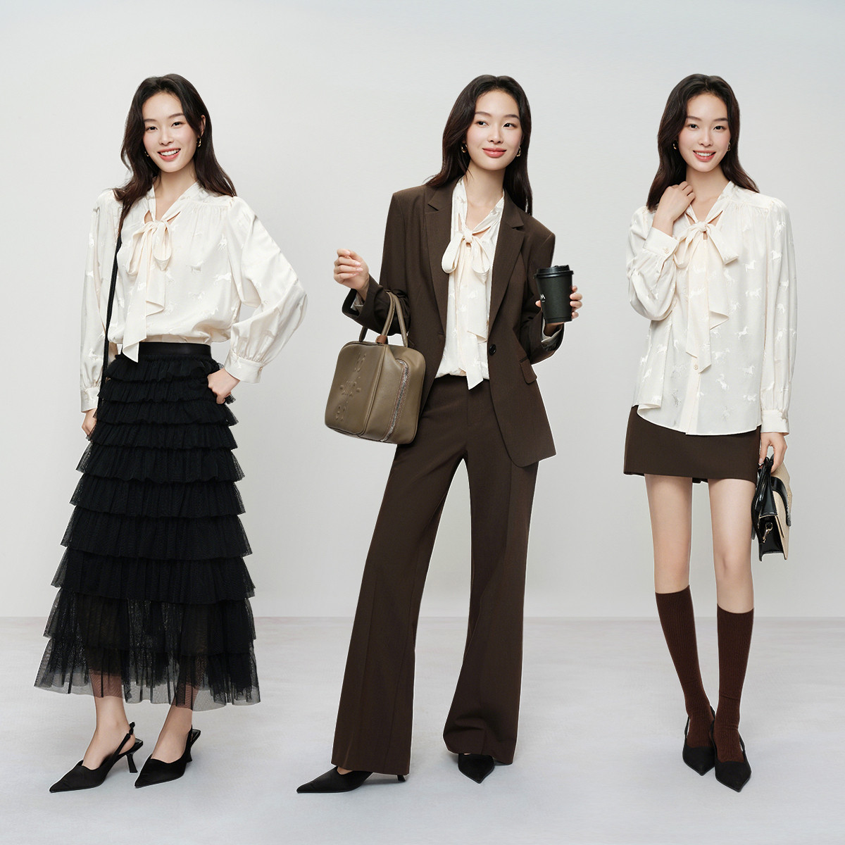 【好运加“马”】naivee纳薇26夏新款飘带V领小马提花法式衬衫