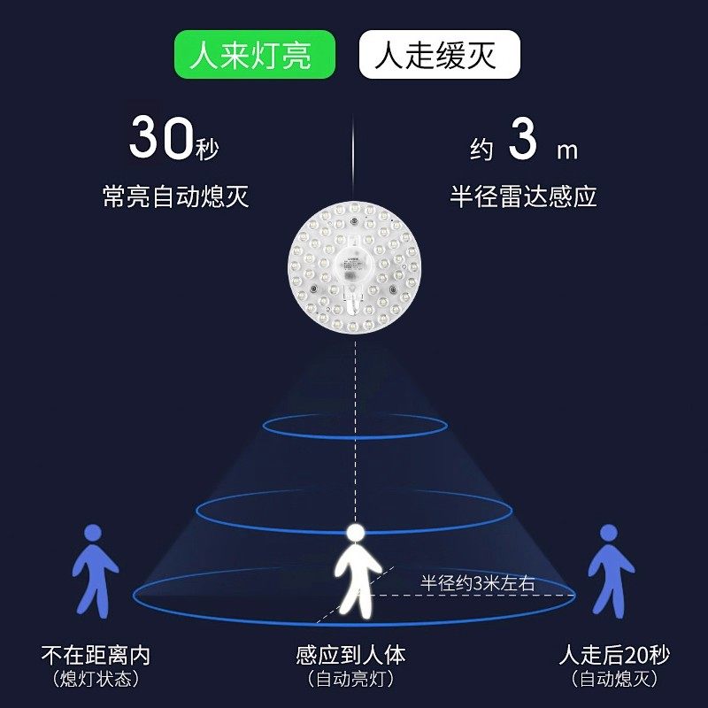 声光控声控吸顶灯led灯芯雷达灯人体感应楼道灯板灯盘替换开关