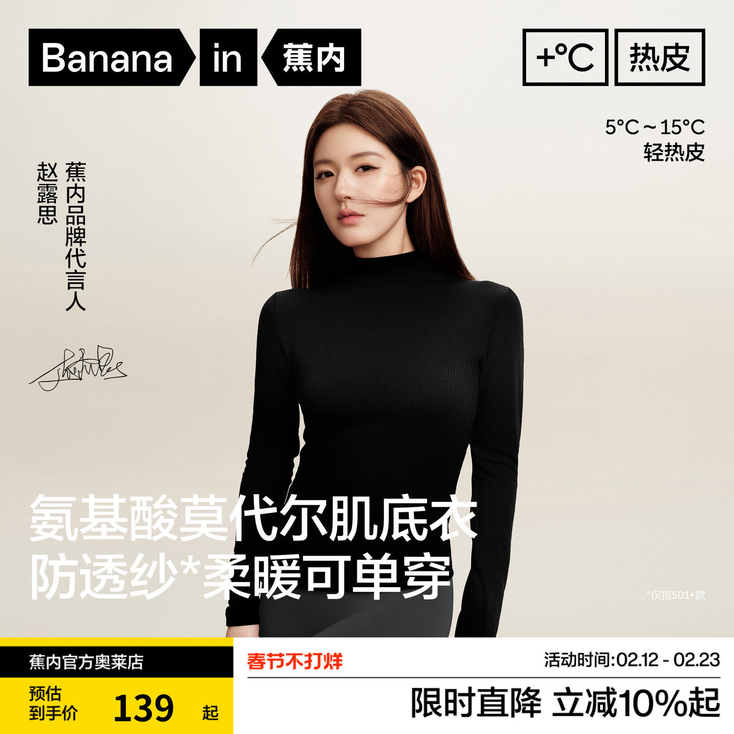 赵露思同款|蕉内打底衫热皮502++女士T恤纯色肌底衣圆领修身内搭