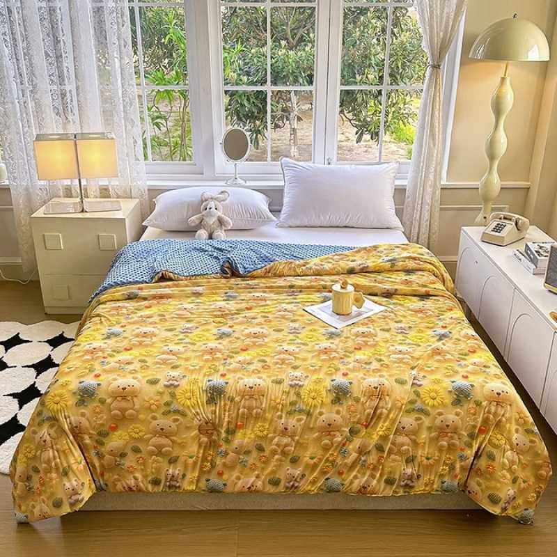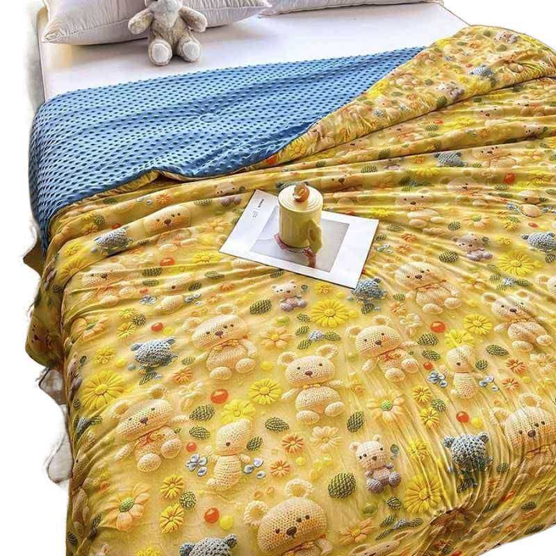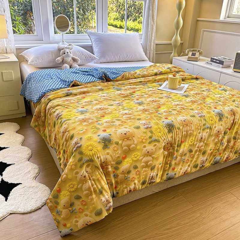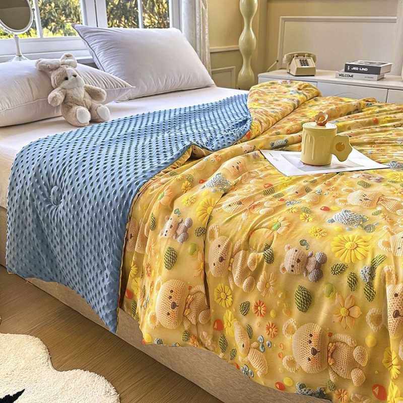 轻薄款刺绣毛巾被可水洗夏凉印花被子柔软透气三件套