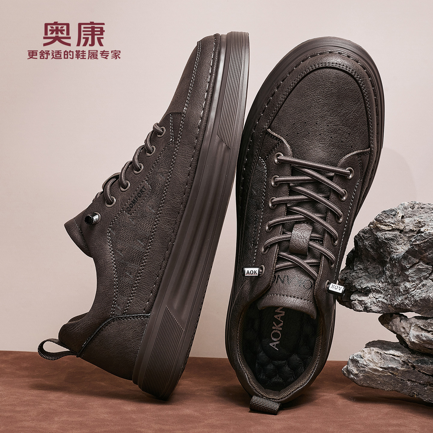 奥康 男鞋2026春季新款耐磨通勤百搭潮流休闲鞋男板鞋男F