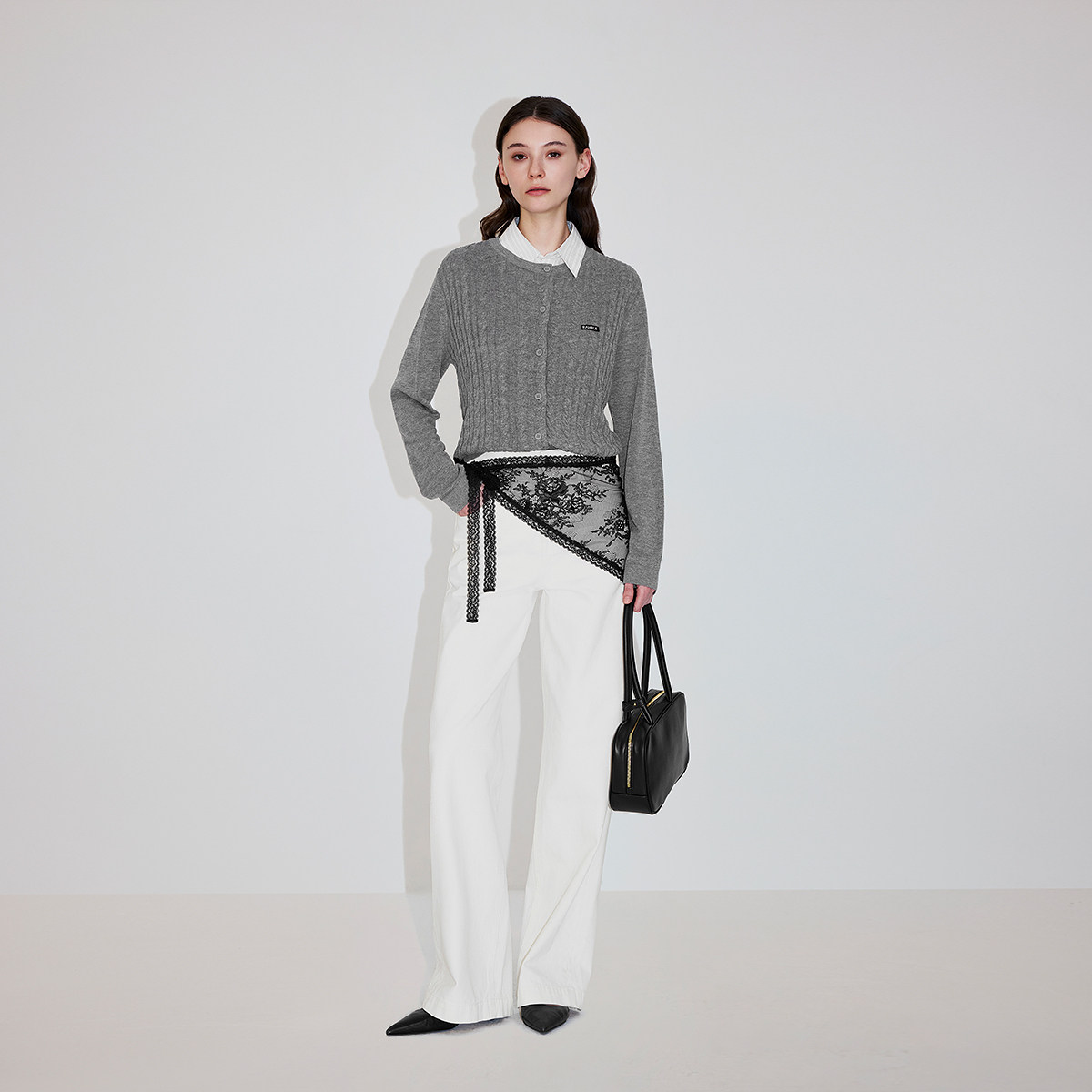 可拆衬衫领,立体扭花肌理