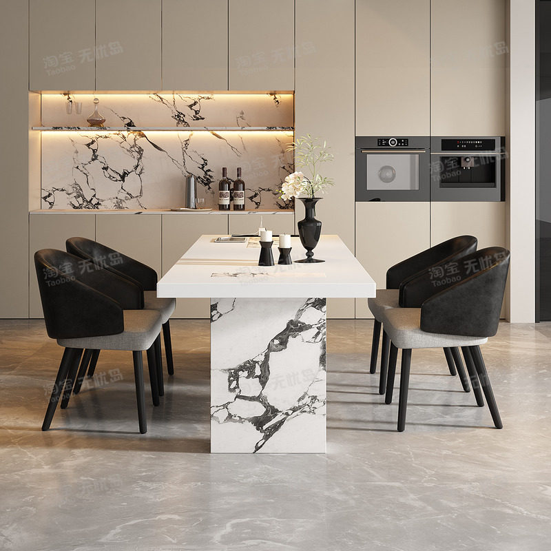 现代简约意式极简全岩板餐桌长方形小户型高级客厅家用饭桌椅组合