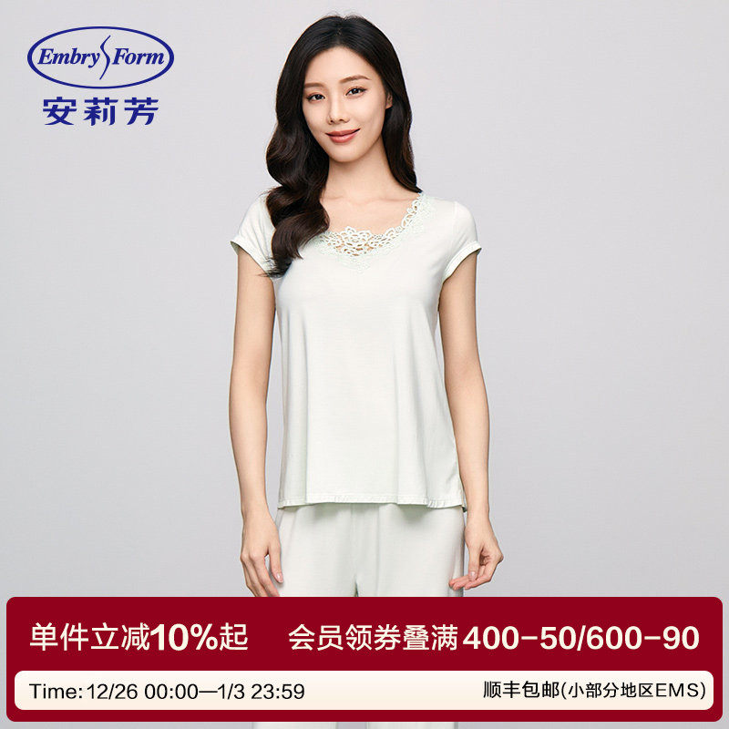 安莉芳专柜新品莫代尔短袖v领女士家居服套装茉莉多酚睡衣EL00729