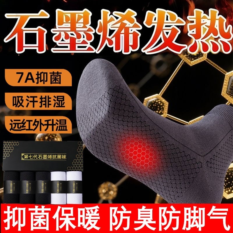 袜子男款防臭防脚气男士女士中筒袜冬抗菌吸汗石墨烯纯棉加厚发热