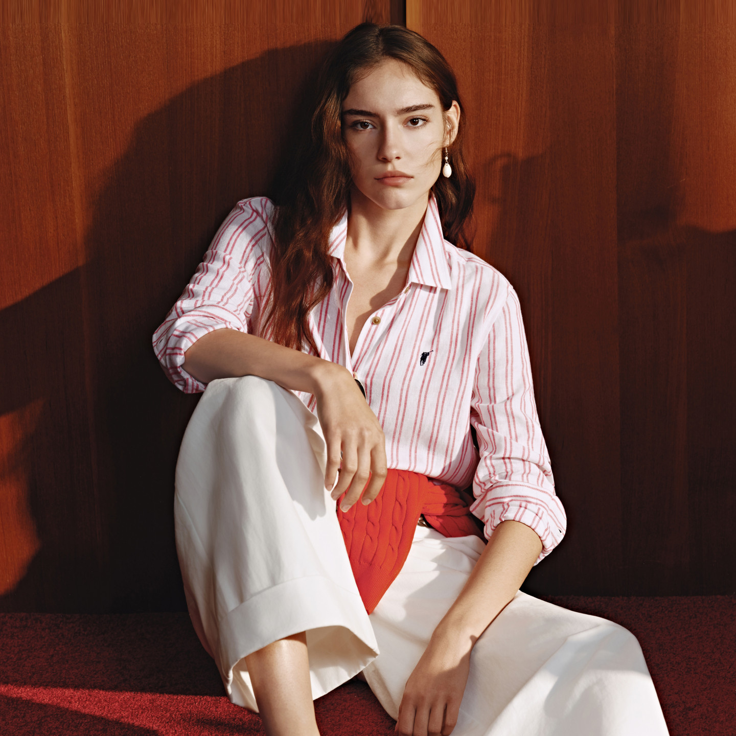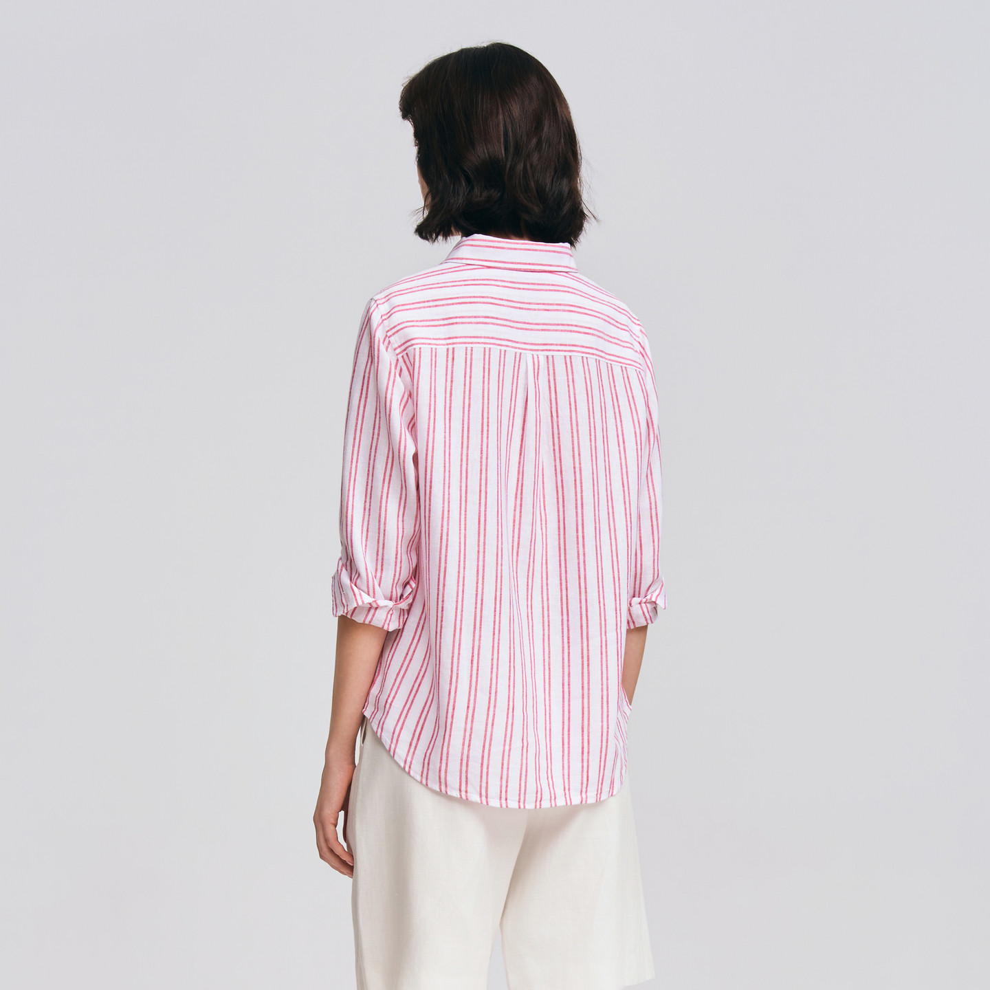 POLOWALK女士衬衫2026春季新品亚麻混纺时尚双条纹翻领长袖衬衫