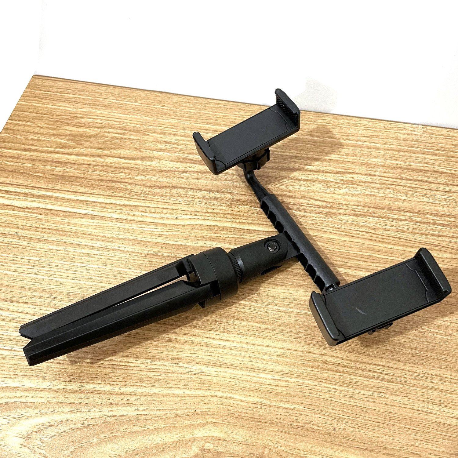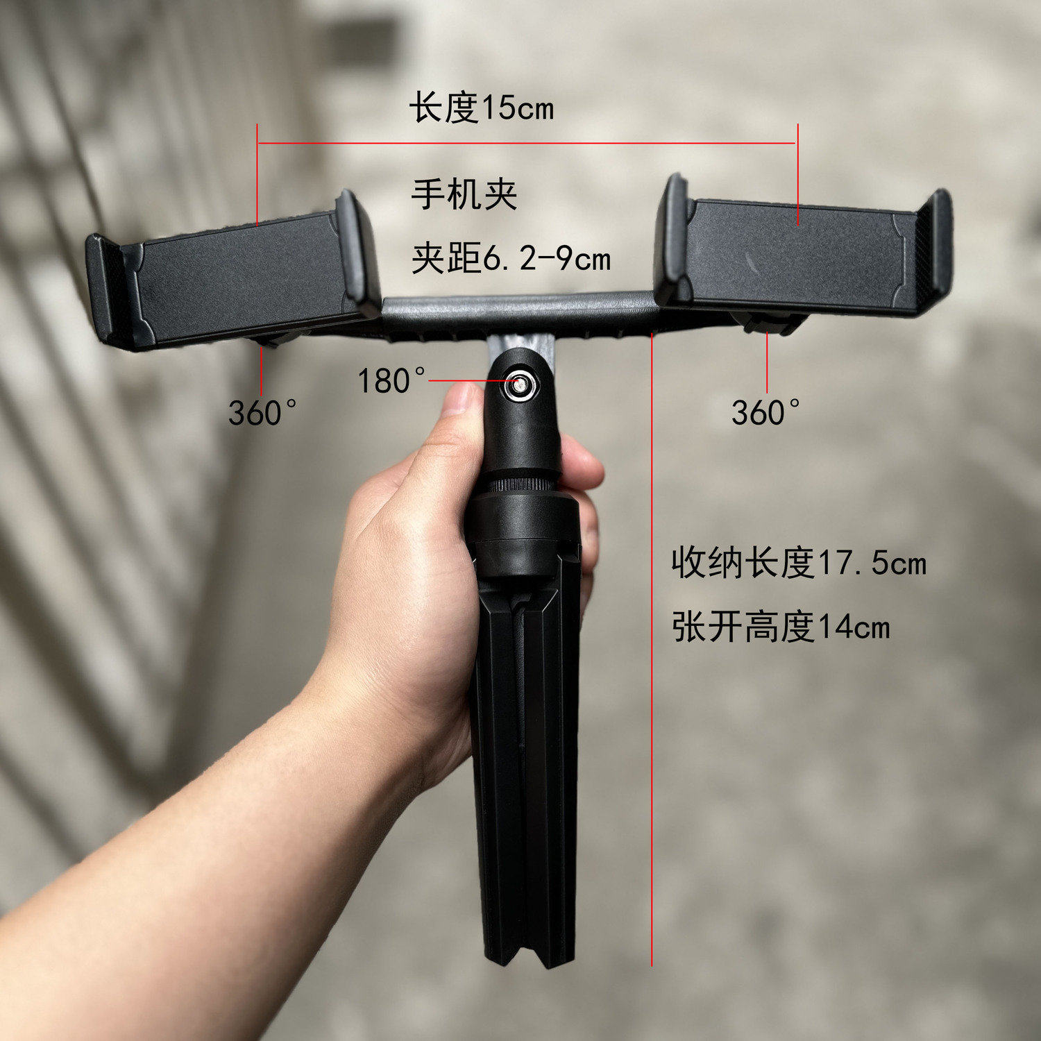 桌面三脚架双机位三角架手机夹360度旋转手持两机位直播手机支架