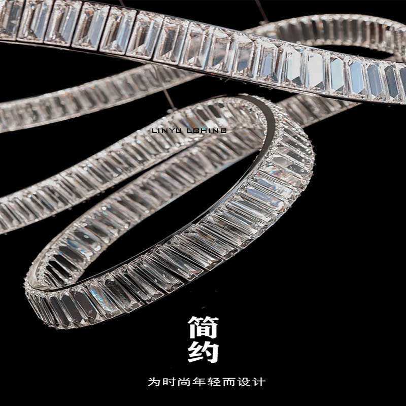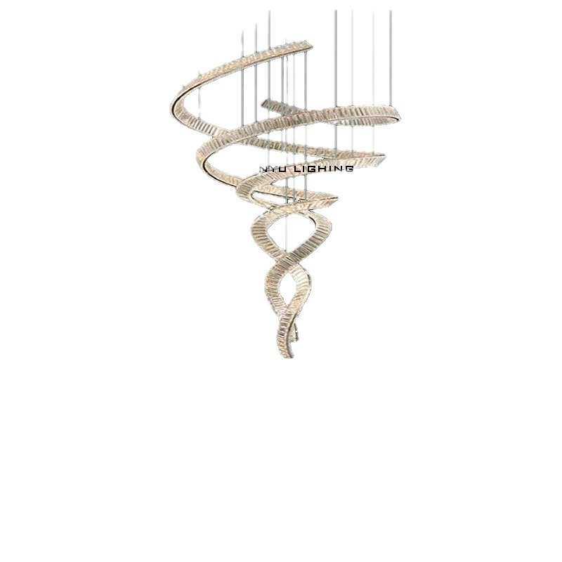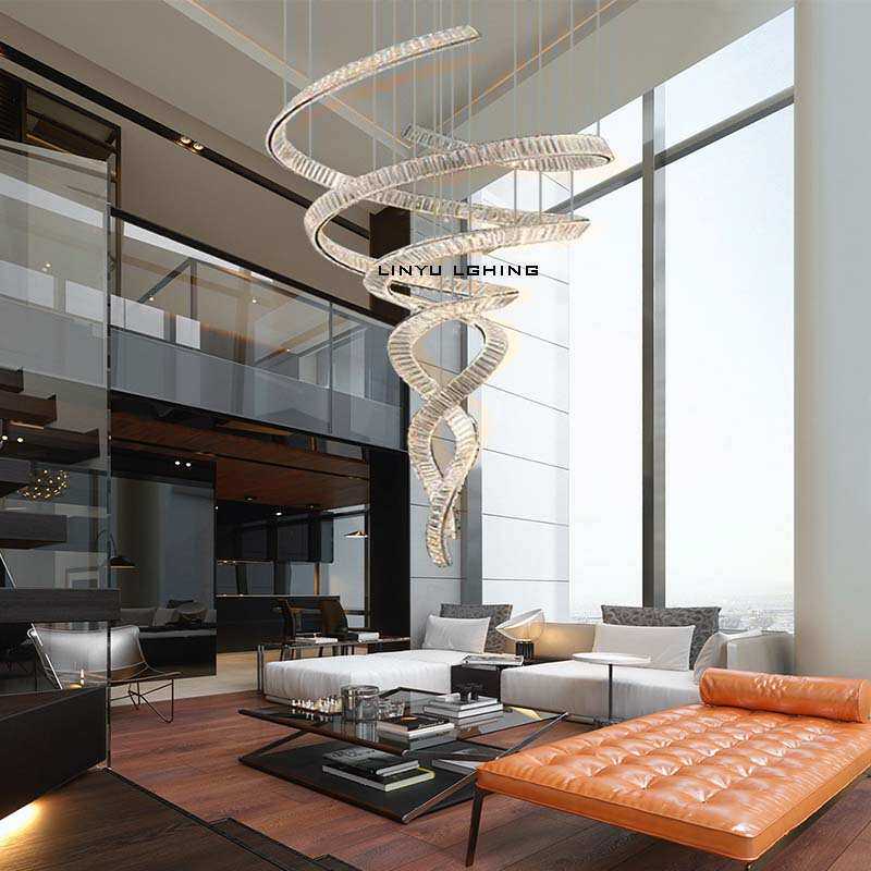 别墅挑空客厅大吊灯设计师轻奢艺术楼梯间复式楼大气水晶飘带吊灯