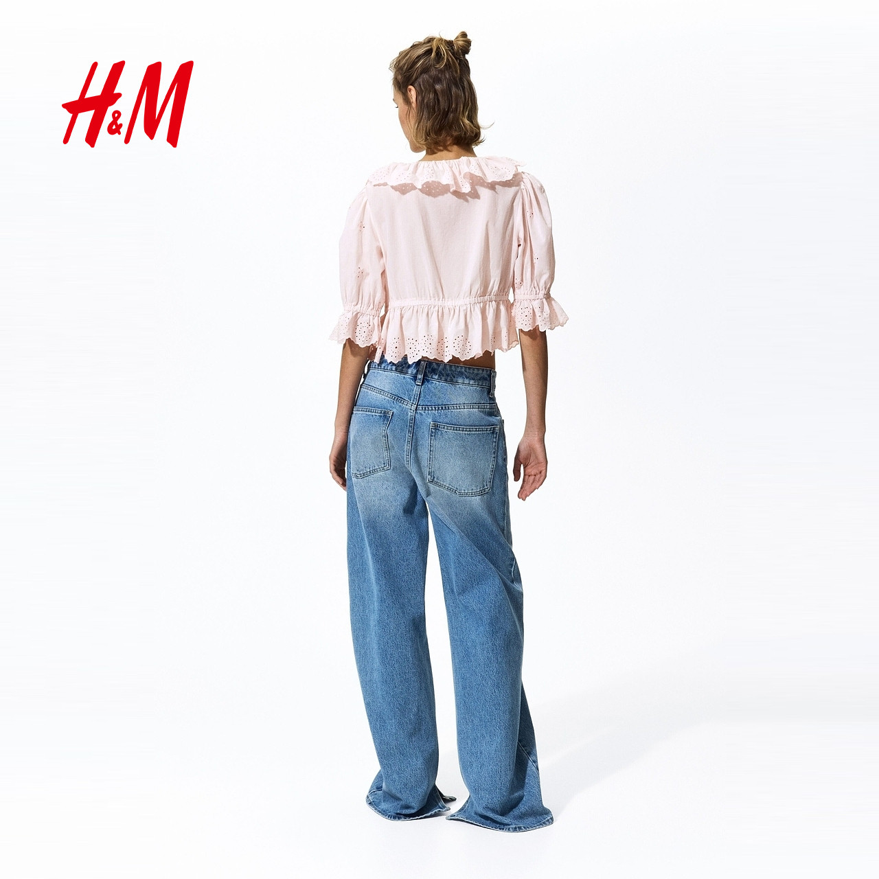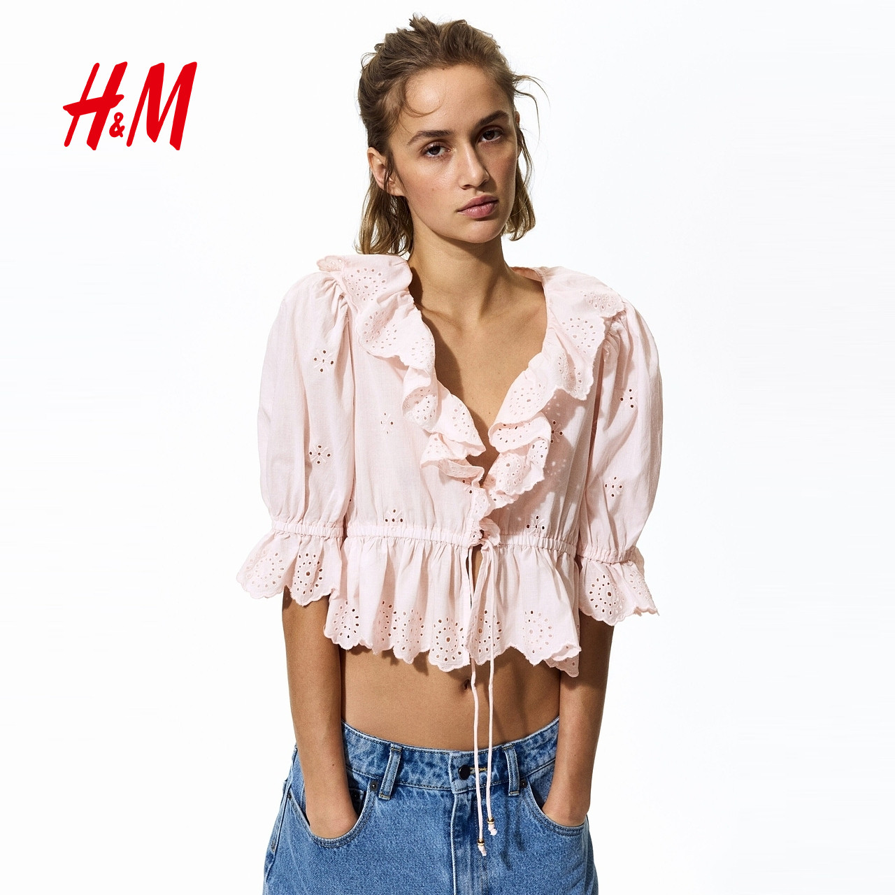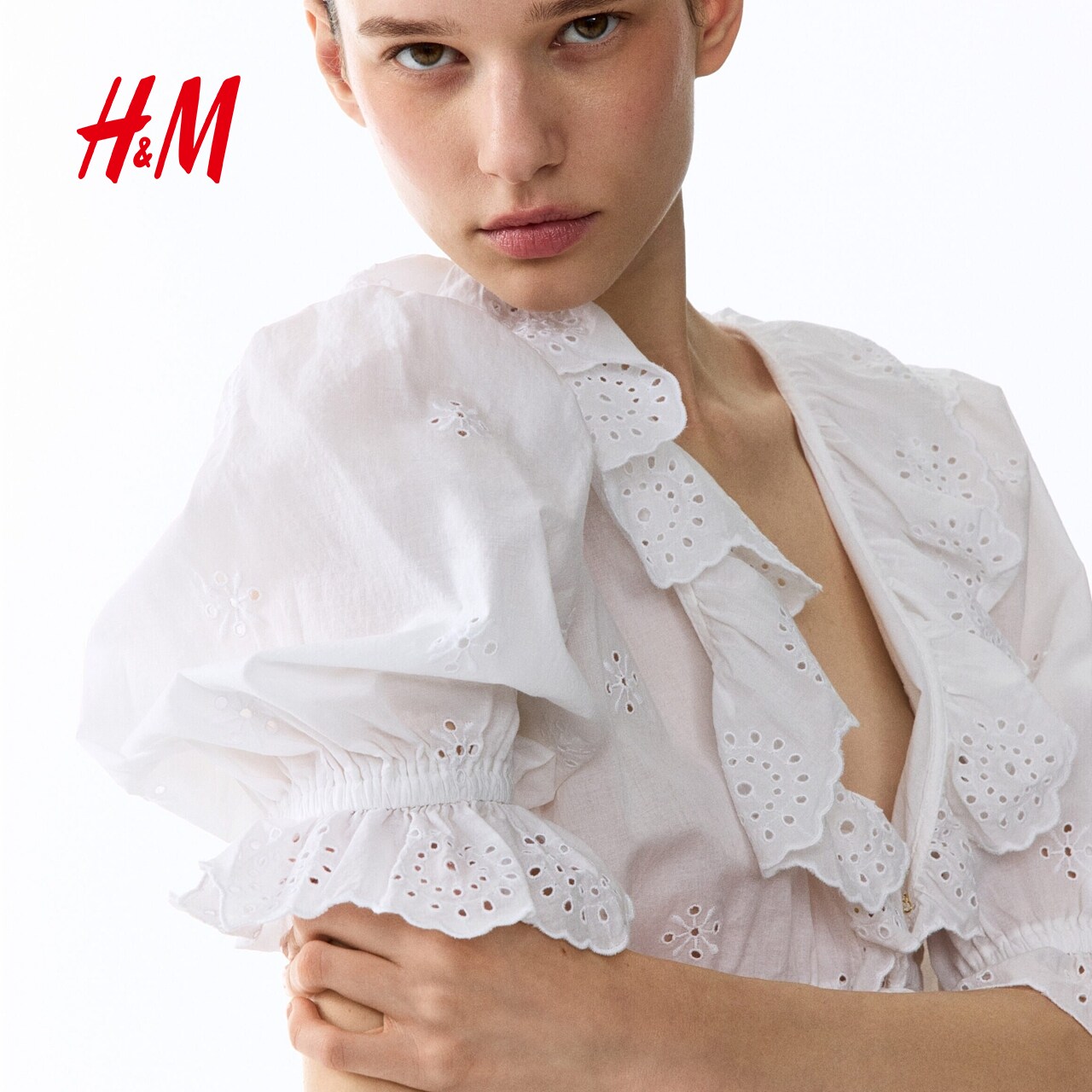 HM女装衬衫2026春季新款镂空刺绣棉质通勤浪漫繁复衬衫1332998
