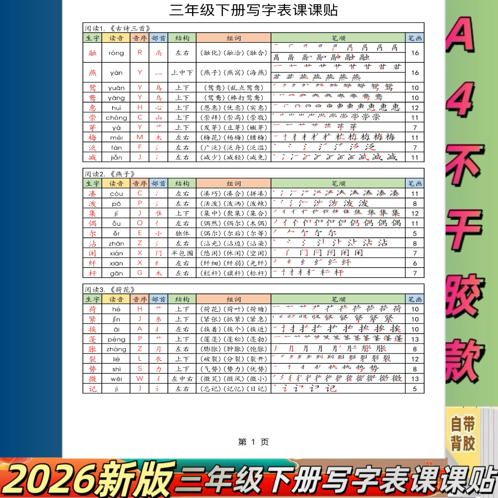 2026新人教版1-6年级下册语文课课贴生字组词笔画笔顺不干胶自粘