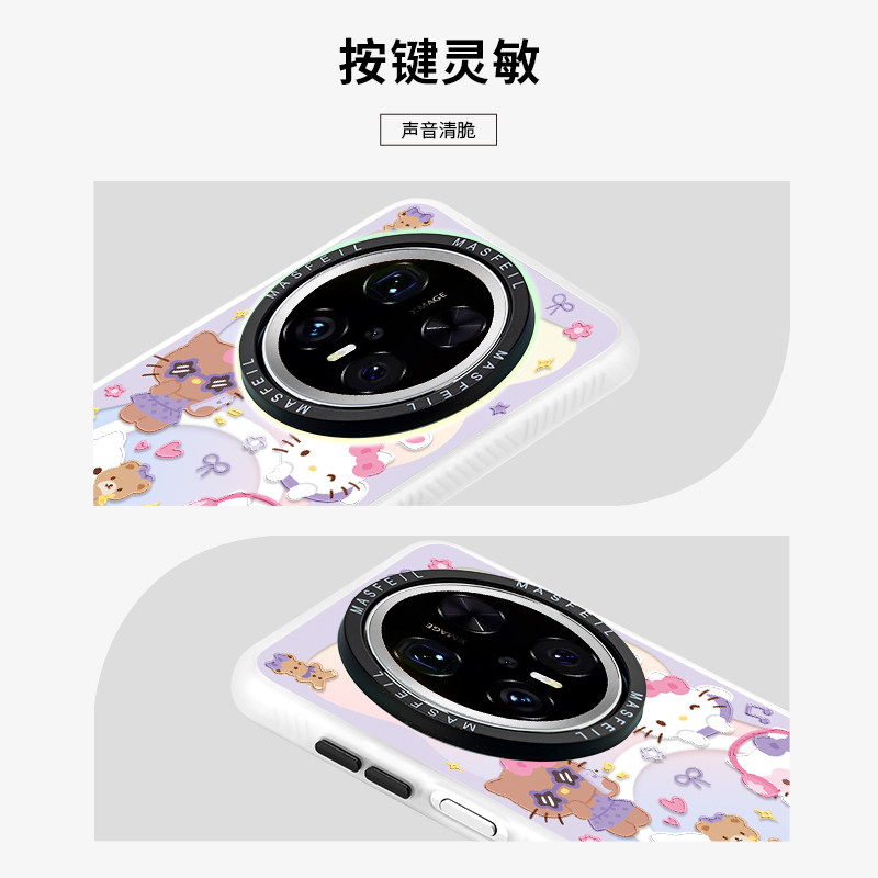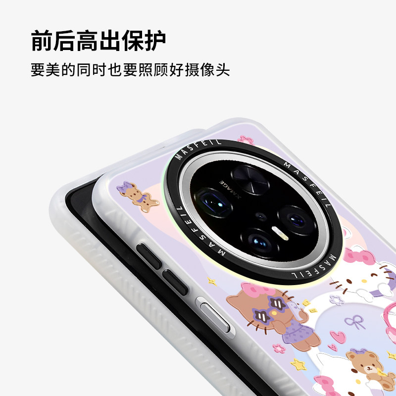 MASFEIL × 紫色凯蒂适用华为Mate80Promax手机壳磁吸带支架mate60保护套超薄硅胶mt70por新款女高级感+全包