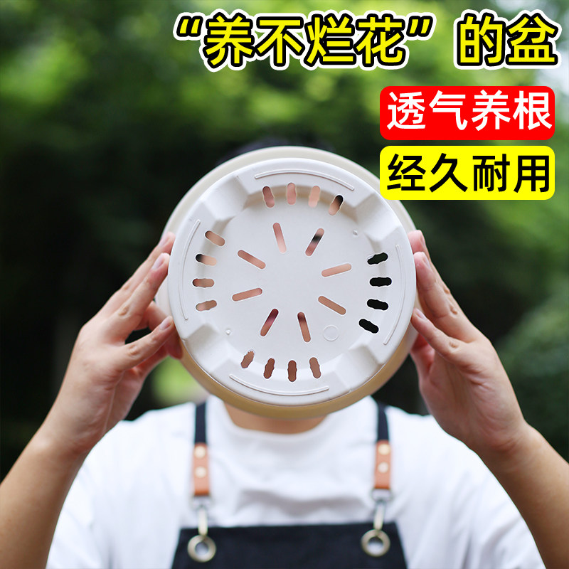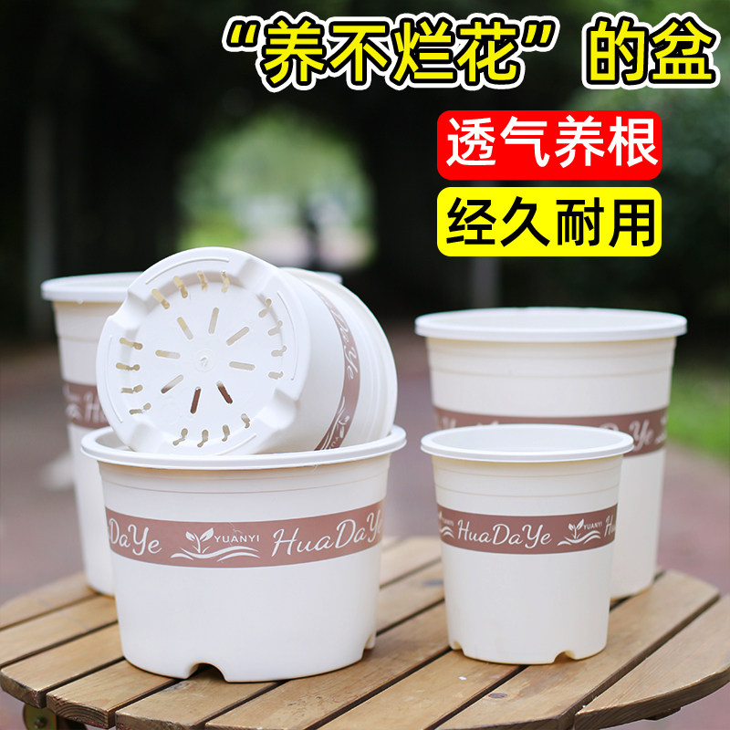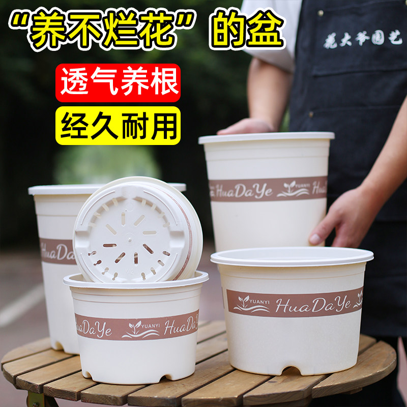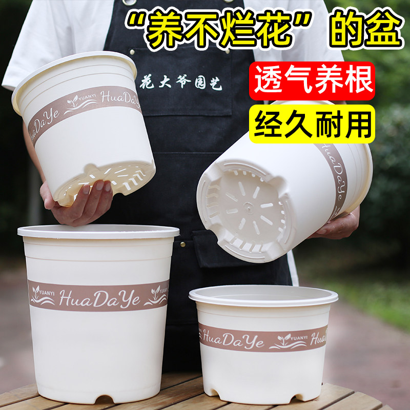 加仑花盆新款三代加厚米白色家用阳台树脂透气控根带托盘高款