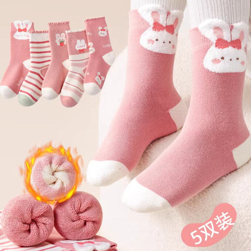 儿童袜子秋冬季女童加厚加绒毛圈袜女宝宝纯棉冬款保暖大童袜卡通