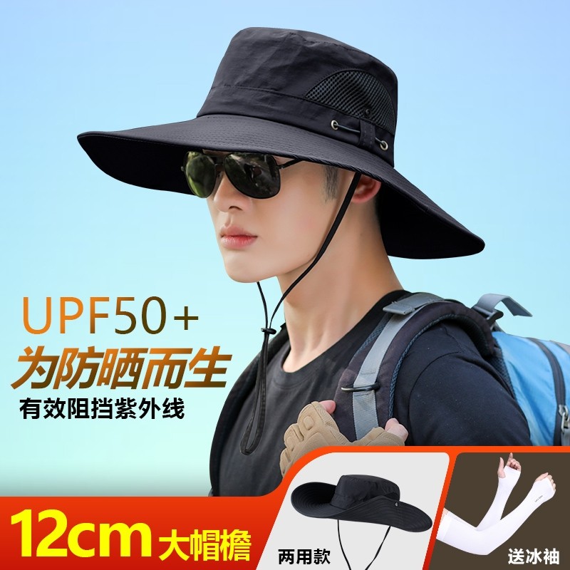 夏季户外遮阳帽子男女防晒帽防紫外线太阳帽登山帽渔夫帽大帽檐