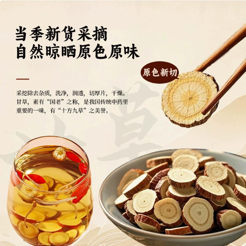 甘草片正品泡水喝中药材内蒙红皮甘草大片止咳化痰旗舰店养菊花