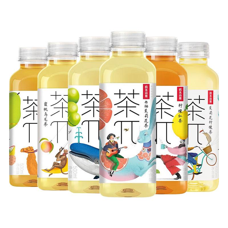 农夫山泉茶π茶派蜜桃乌龙果味茶饮料500ml西柚茉莉花茶果汁饮品