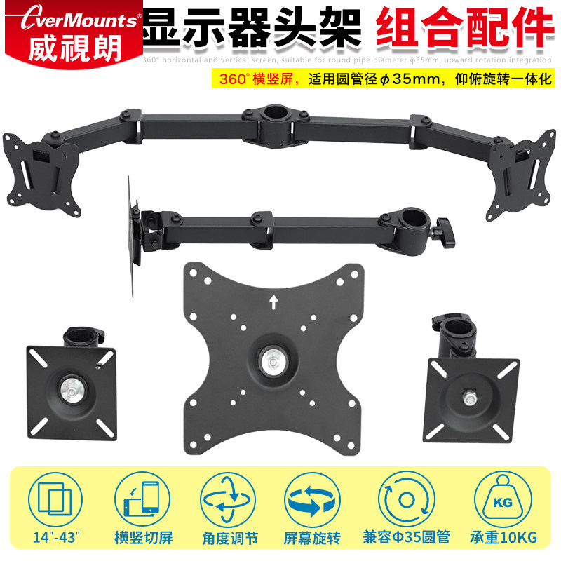 横竖屏显示器支架旋转臂三脚架头部托架电脑安装配件孔距增大扩展