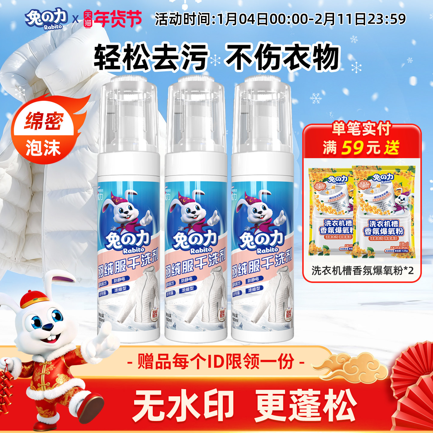兔力羽绒服清洗剂免水洗清洁剂干洗剂家用棉衣免洗清洁慕斯洗涤剂