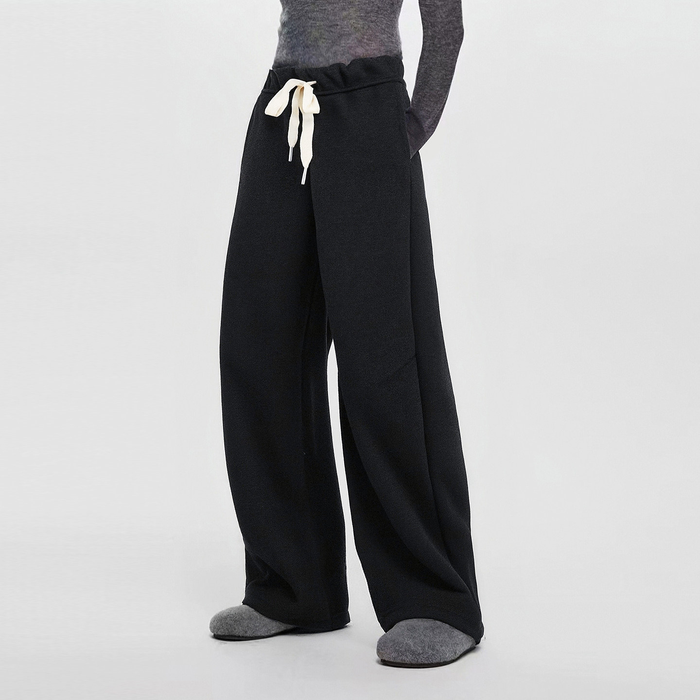 CLOUDSPACE【云绒弯刀裤】羊毛混纺加绒阔腿裤2025冬新款休闲裤女
