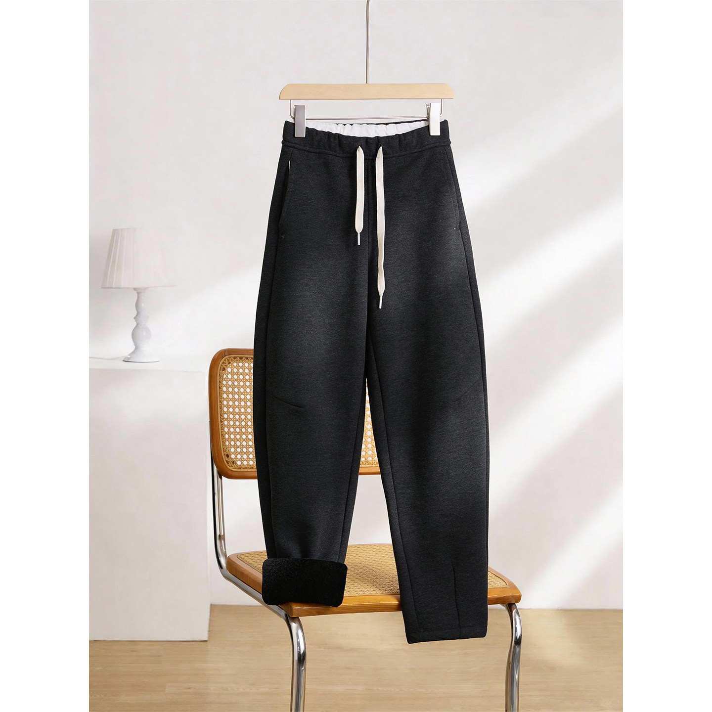 SIINSIIN弯刀卫裤2025新款女冬加绒垂感长裤运动休闲加厚裤子白色