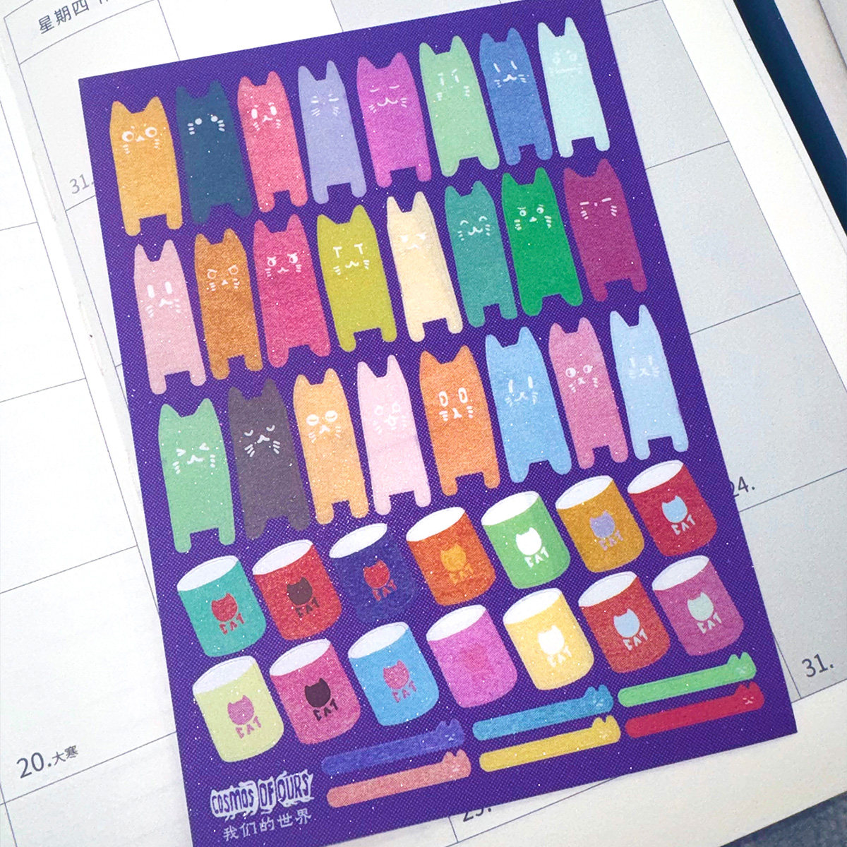 「猫条图鉴Ⅱ」原创手帐贴纸PET 10*14cm 闪砂切膜手绘 猫咪彩色