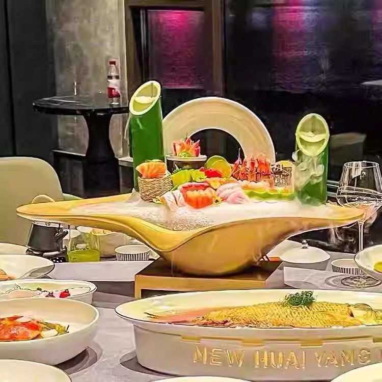 日式料理象拔蚌刺身盘高端三文鱼刺身冰盘海鲜姿造鱼生专用盘商用